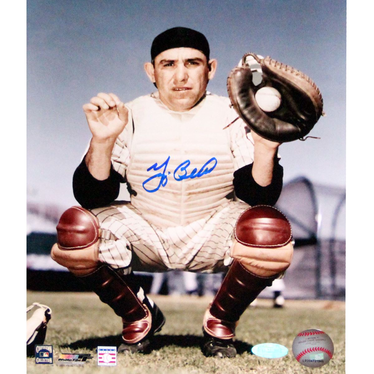 Yogi Berra Signed Color in Catcter's Uniform without Mask 8x10 Photo