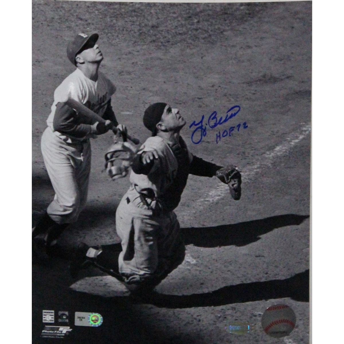 Yogi Berra Signed Mask Flip 8x10 Photo w/ “HOF 1972” insc (MLB Auth)