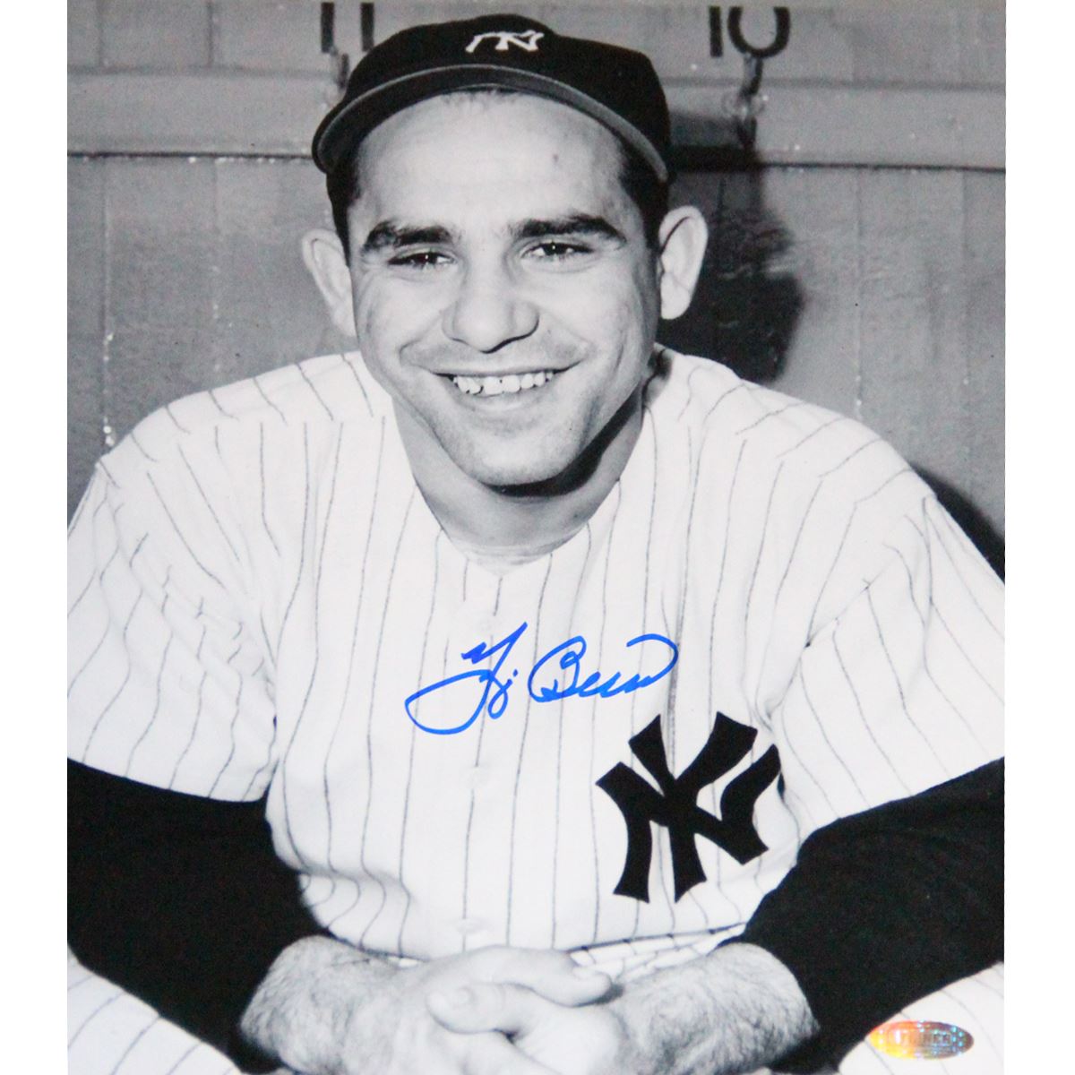 Yogi Berra Signed Posing w/ Hands Folded B/W 8x10 Photo