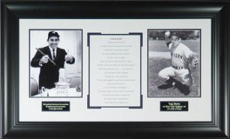 Yogi Berra played on 10 World Series championship teams and appeared in 14 World Series with the New York Yankees. Berra was selected to the All-Star team every year from 1948 to 1962 and was a three-time American League MVP. He called three no-hitters, one of them Don Larsen's perfect game in the 1956 World Series. Yogi is perhaps one of the most quoted personalities of our time. From media icons to Presidents, Yogi's saying have crept into our lives and surround us. Some of his utterances that created the phrase " Yogi-isms". This 2 Photo 34X21 includes a list of his most popular "Yogi-isms" Custom Matted and Premium Black Framing as shown.
