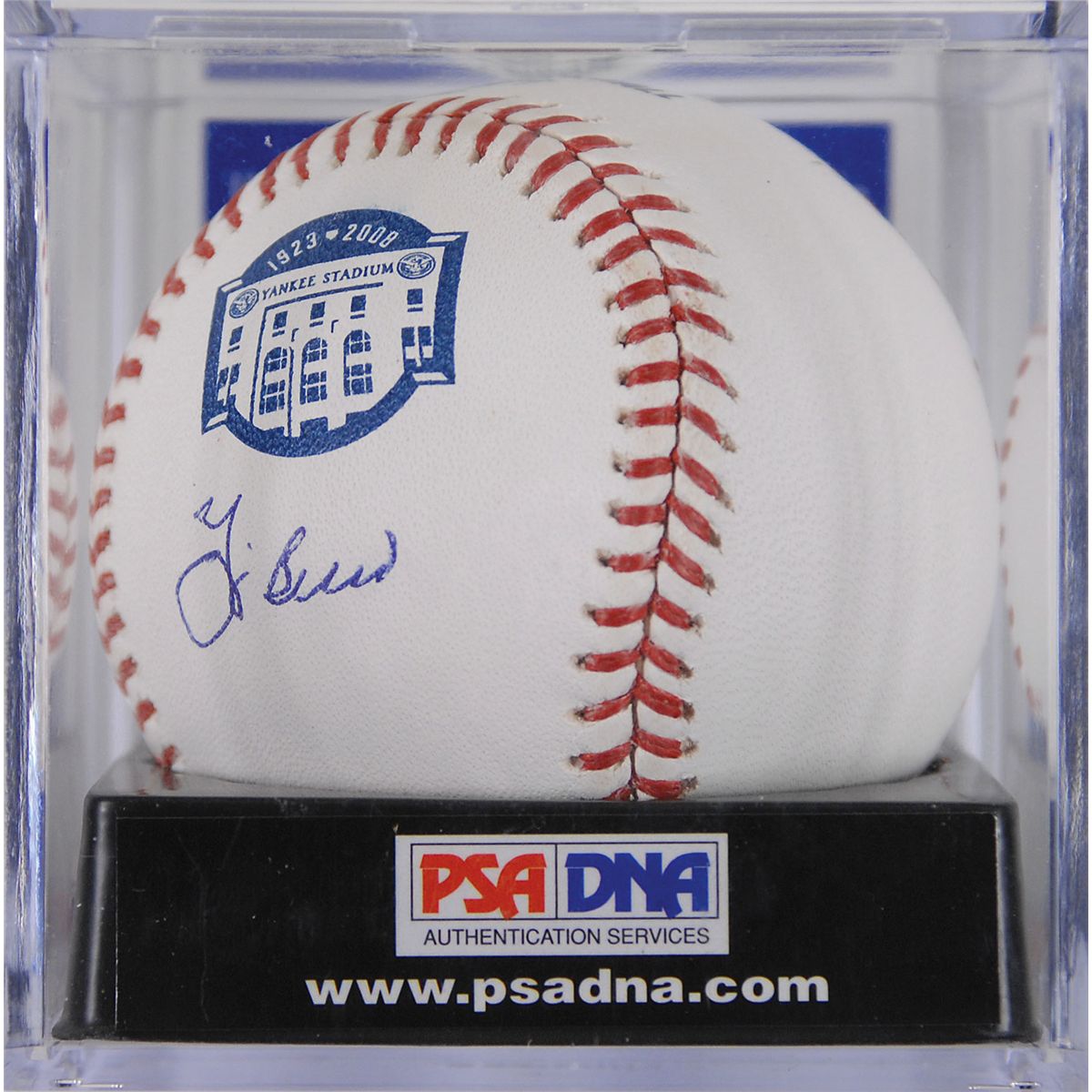 Official Rawlings Major League baseball commemorating the last year of Yankee Stadium, signed in blue ballpoint on a side panel. In very fine condition. Accompanied by a certificate of authenticity and grading from PSA/DNA, giving the baseball an overall grade of “9.”