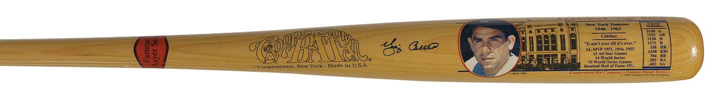 Official limited edition Cooperstown Bat Company commemorative baseball bat, part of the Famous Player Series, #667/1000, signed in blue felt tip on the barrel, “Yogi Berra.” In very fine condition.