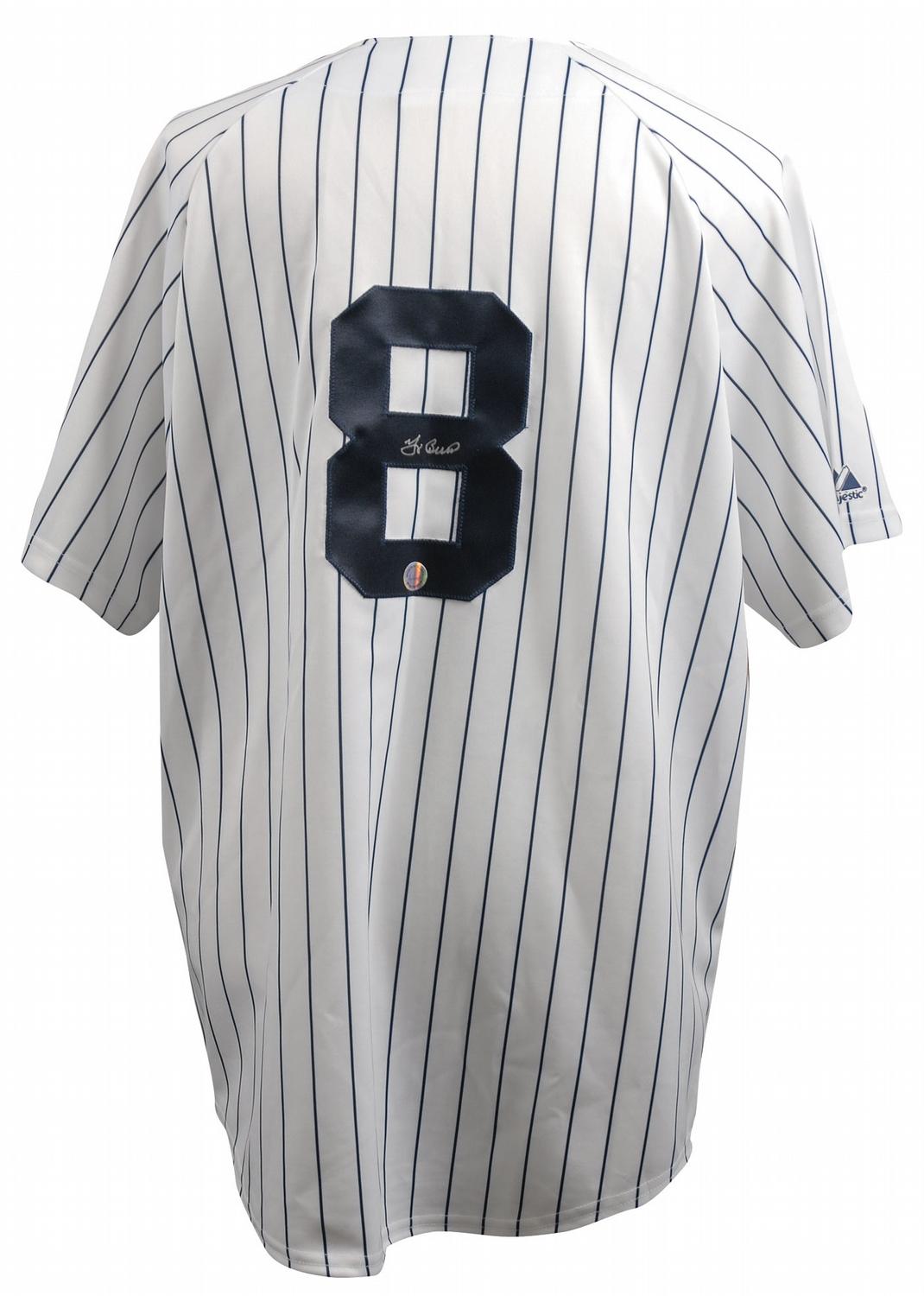 Official Majestic replica New York Yankees baseball jersey, with sewn on letters and numbers, signed in silver ink on the number on the back. In very fine condition.