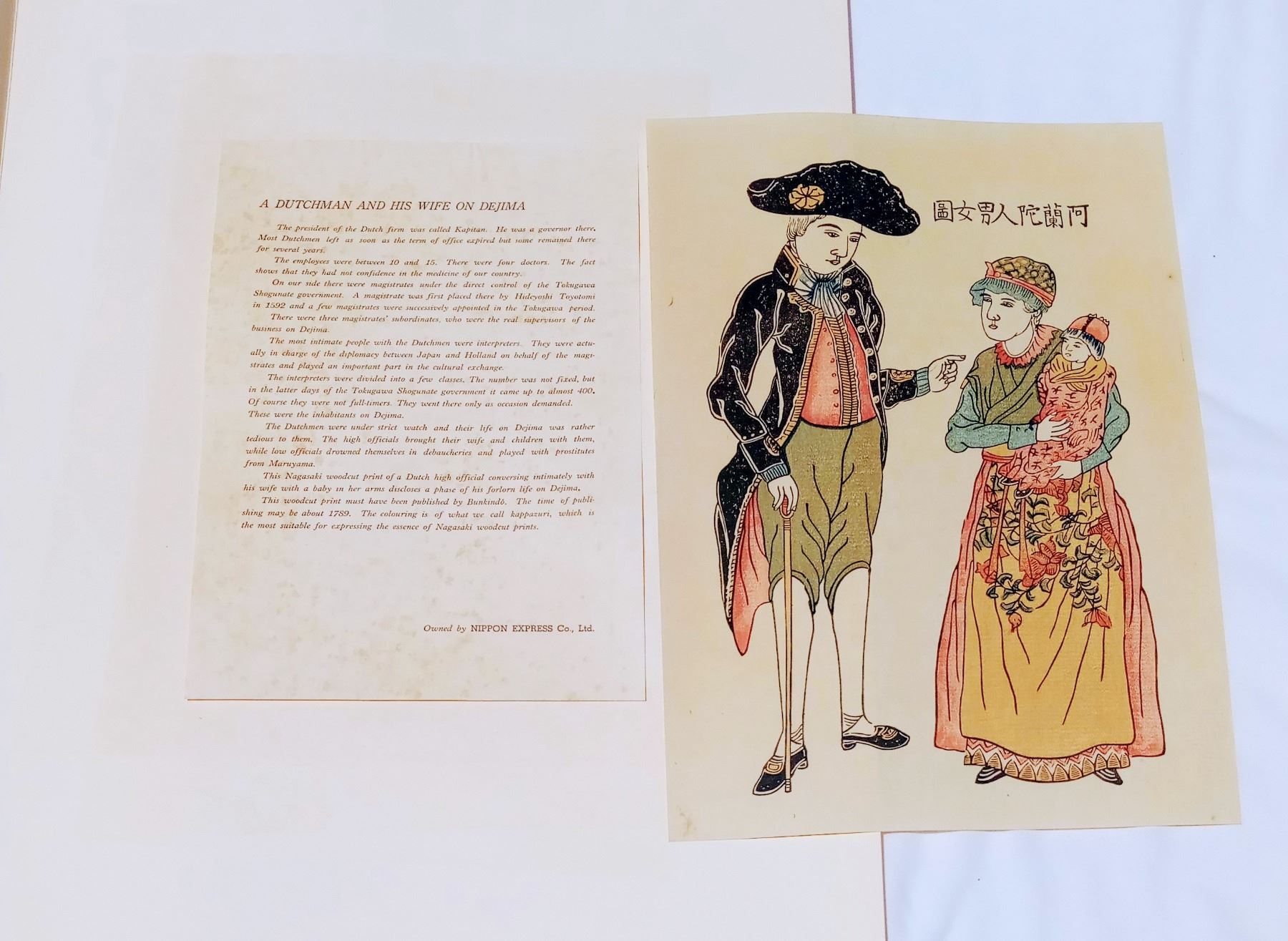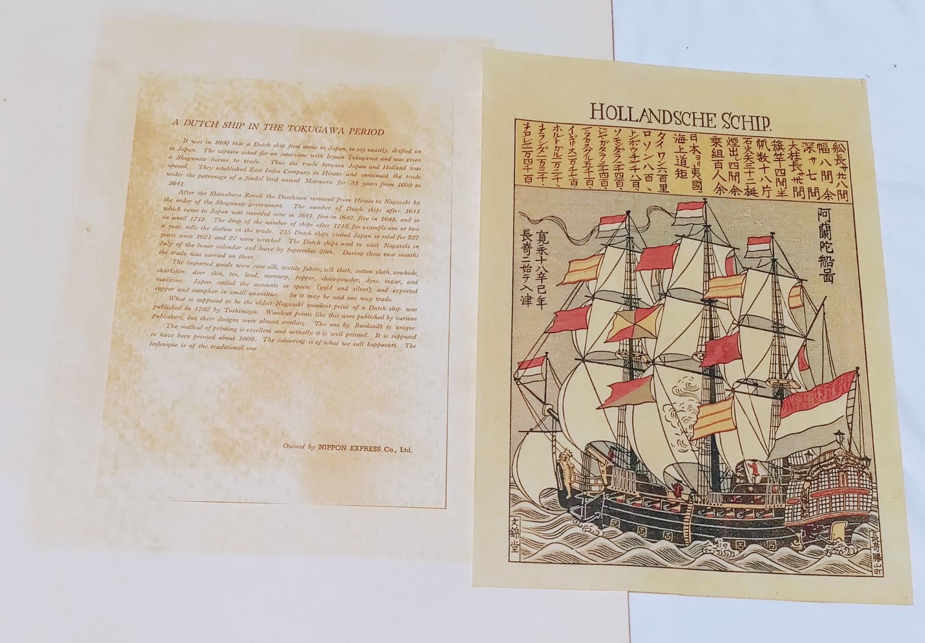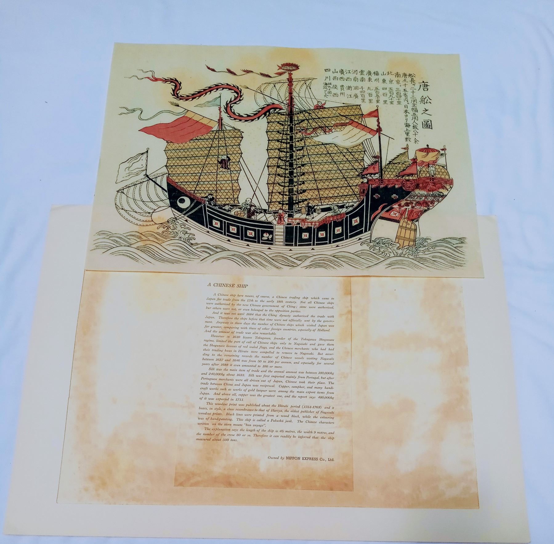 4 Woodblock Print of Yokohamh-e and Nagasaki Comes with Print and The Story Behind Each Print. The Tsuunmaru ( A River Steamer) 9†H x 18 1/4†W, A Dutchman and His Wife On Dejima 12 3/4†H x 9 1/4†W, A Chinese Ship 13†H x 18†W and A Dutch Ship in the Tokugawa Period 12 1/2†H x 9 1/4†W