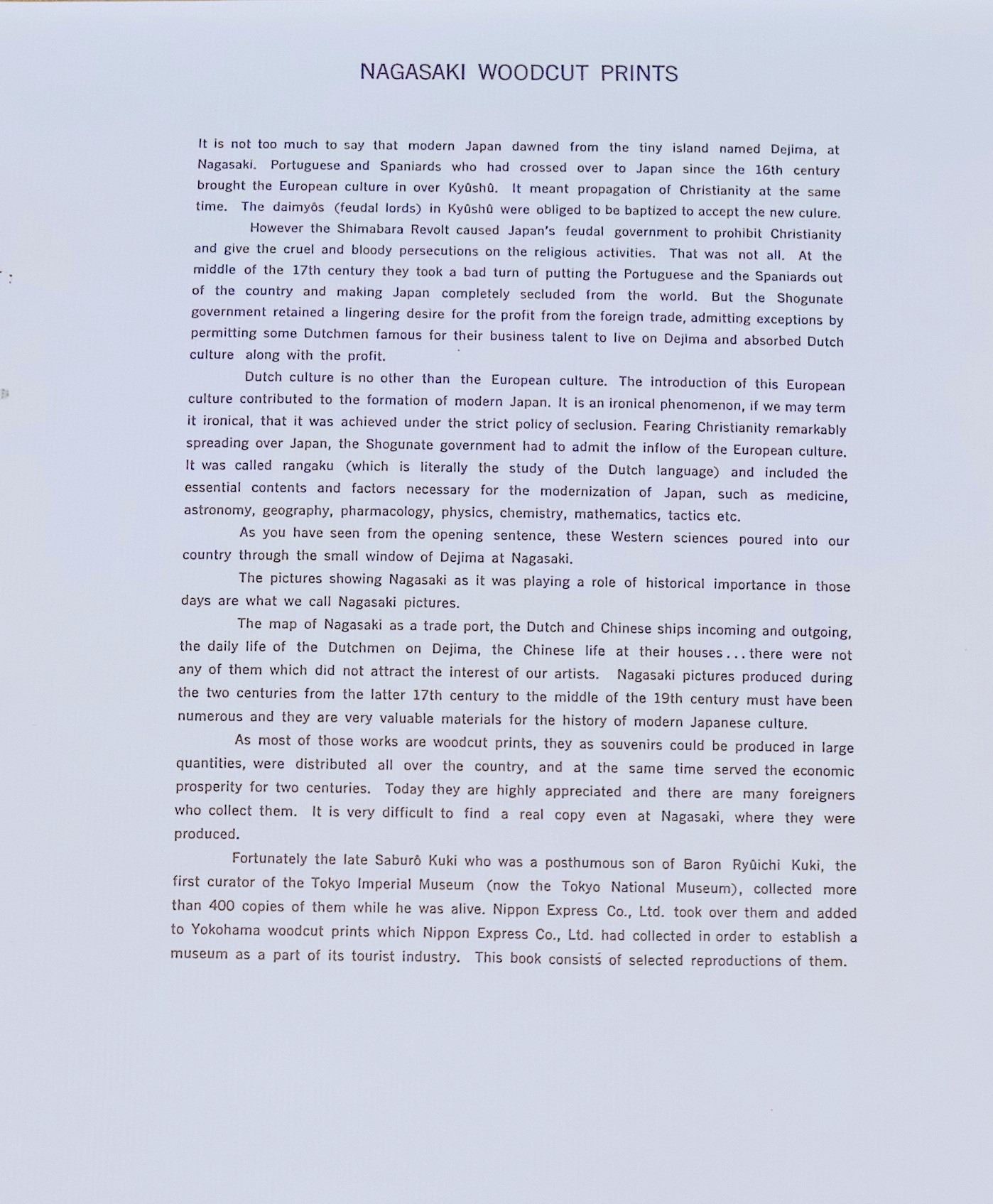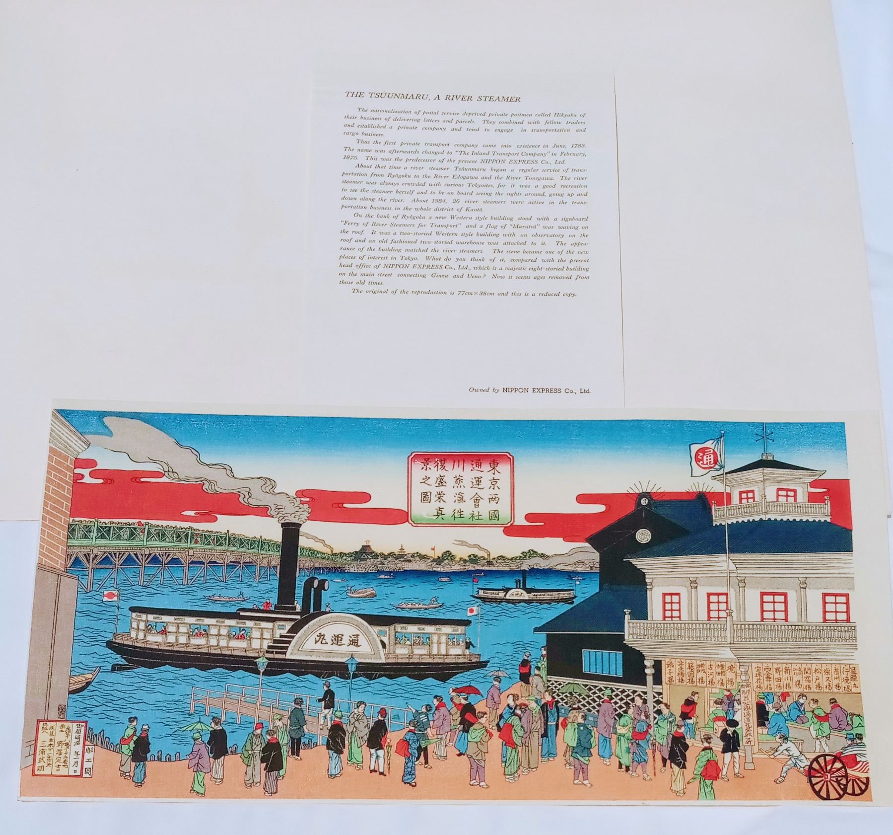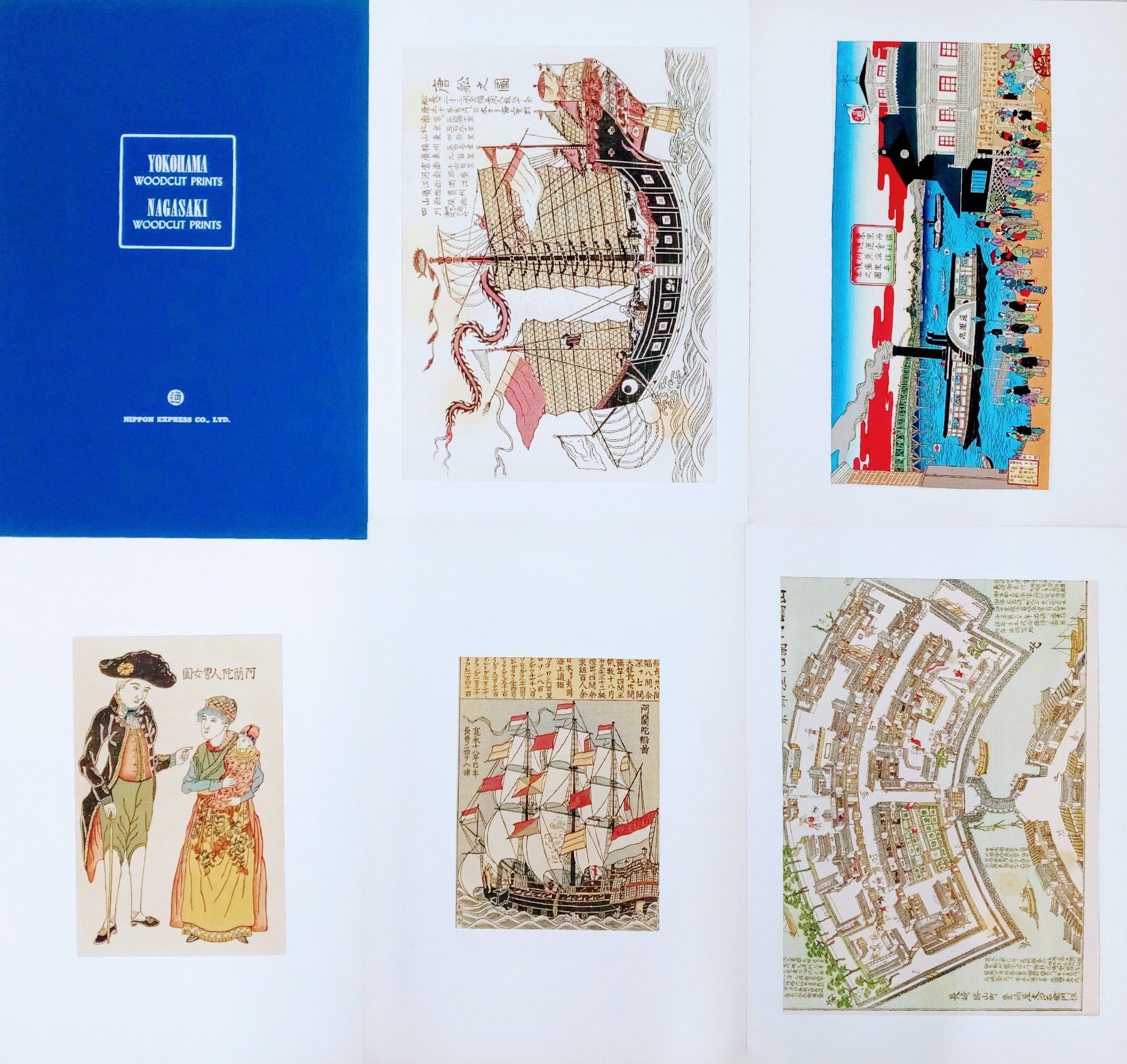 4 Woodblock Print of Yokohamh-e and Nagasaki Comes with Print and The Story Behind Each Print. The Tsuunmaru ( A River Steamer) 9†H x 18 1/4†W, A Dutchman and His Wife On Dejima 12 3/4†H x 9 1/4†W, A Chinese Ship 13†H x 18†W and A Dutch Ship in the Tokugawa Period 12 1/2†H x 9 1/4†W