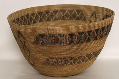 Yokuts Basket. 10" x 15 ½”. Typical Rattlesnake designs. c. 1900. Excellent condition. (est $3,000-4,000).
