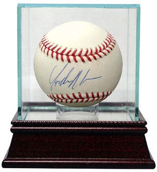 Alonso played 155 games for the Padres in 2012, including 144 starts at first base, and posted a batting line of .273/.348/.393 with 9 home runs. He set a Padres franchise record with 39 doubles as a rookie, breaking the old rookie mark of 33 by Benito Santiago in 1987. Alonso also had 10 multi-double games, the most in the major leagues since 2006. He finished 6th in the NL Rookie of the Year voting. Yonder Alonso has hand signed this Official Major League Baseball. MLB Hologram and Certificate of Authenticity. Glass Display Case shown IS included
