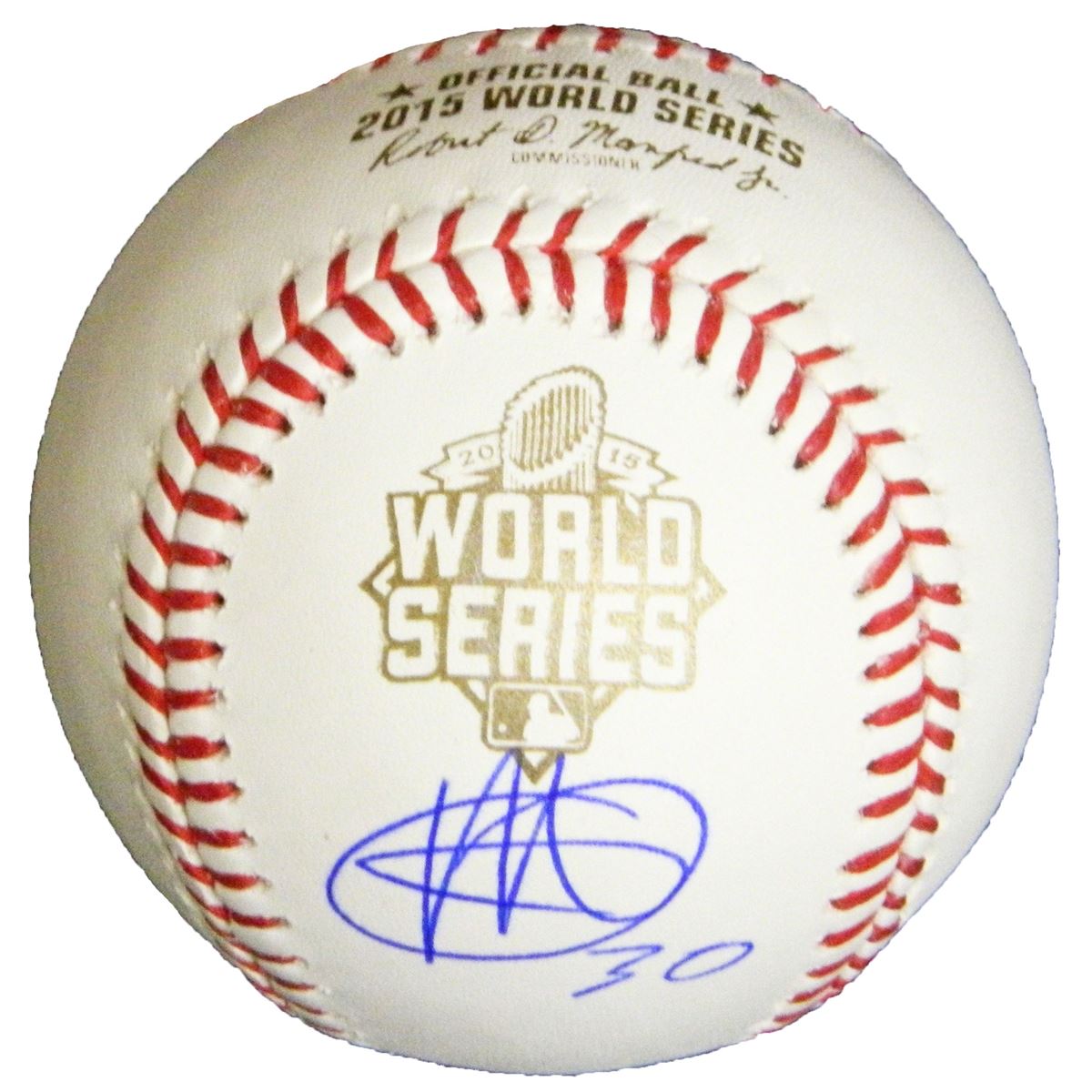 Yordano Ventura signed Rawlings 2015 World Series logo official MLB baseball. Item comes with a Schwartz Sports Memorabilia tamper-proof numbered hologram and Certificate of Authenticity which can be verified online.