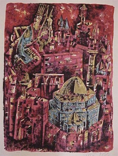 JERUSALEM, color lithograph, signed in pencil, from the numbered edition 150, image 23 x 16 ½”, full margins, soft creases, light soiling. $200/300