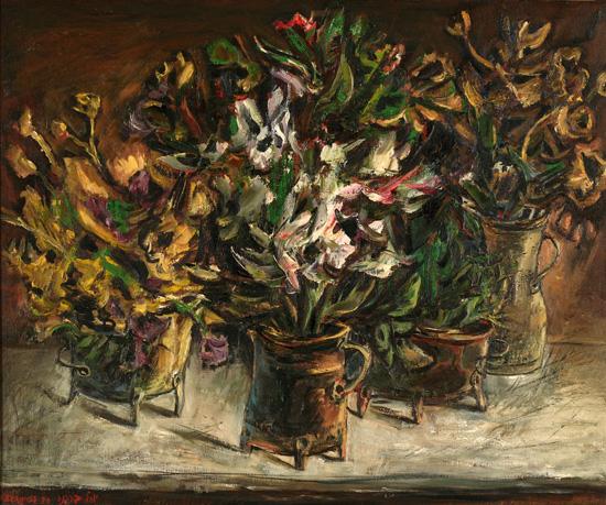 Yosl Bergner, Israeli Art, B. 1920, Autumn Flowers, 1980, Oil on canvas, 50x61cm, Signed and dated. Titled on the reverse., , , , ,