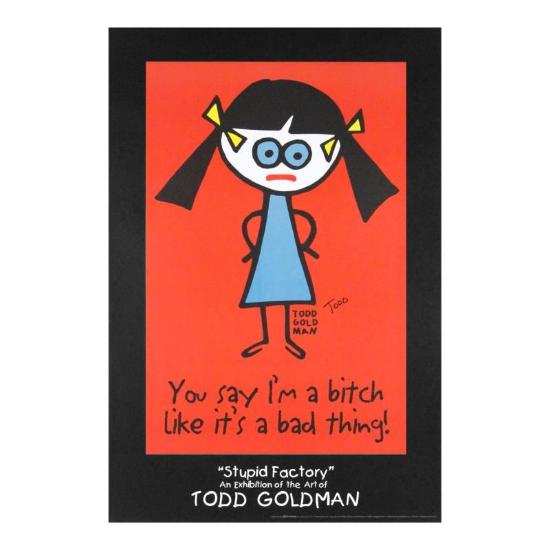 ADD THE IRREVERENT ARTWORK OF WORLD-RENOWNED ARTIST TODD GOLDMAN TO YOUR COLLECTION! Pop artist Todd Goldman is known all across the globe for his whip-smart and wickedly funny puns and pictures! "You Say I'm A Bitch Like It's A Bad Thing!" is a fine art litho poster hand signed by Todd. Measures approx. 24" x 36" (poster).