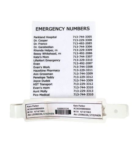 Kate (Hilary Swank) screen used, hero, hospital bracelet, and emergency numbers list. (approx. 4 1/2" x 3 1/2")