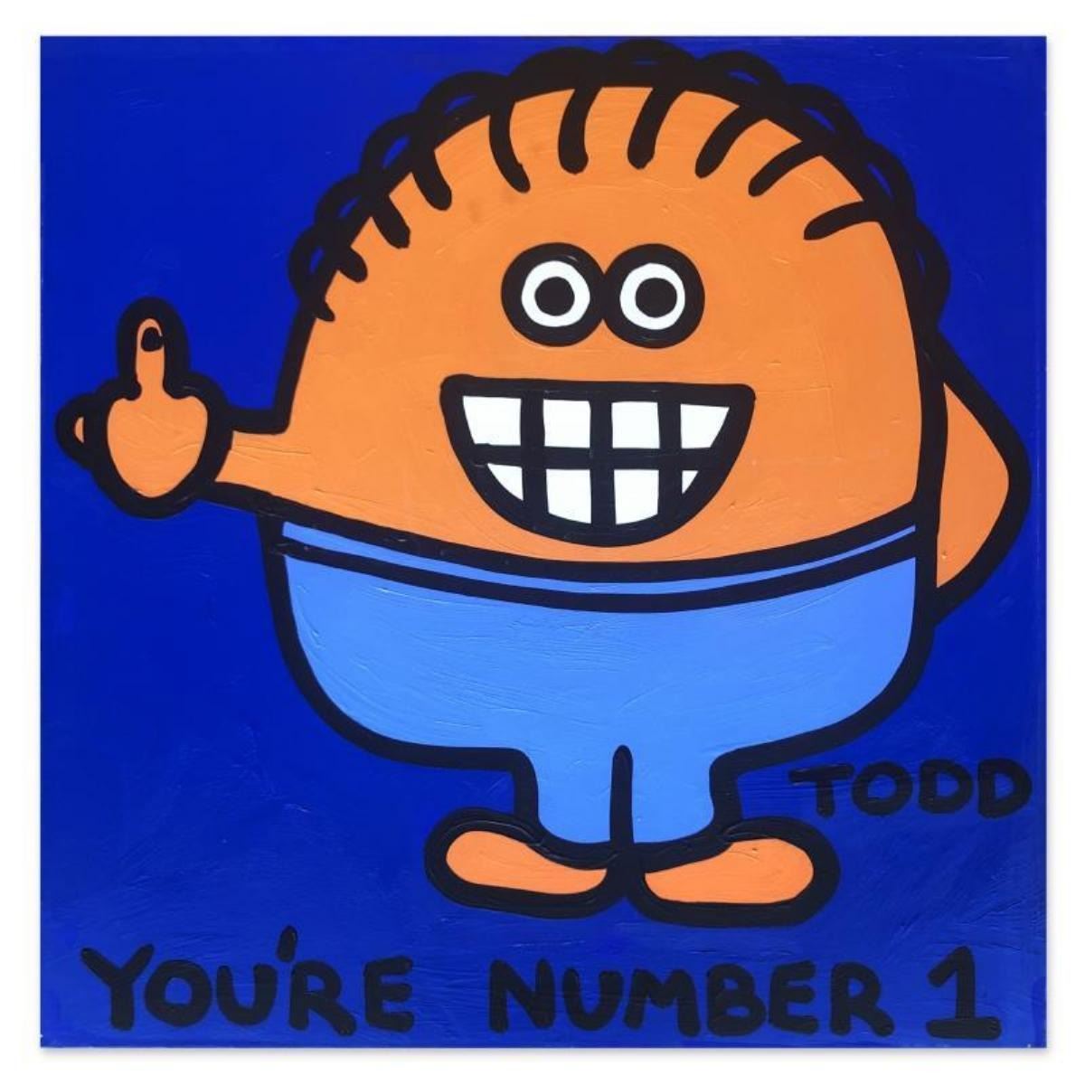 You're Number 1 by Goldman Original. "You're Number 1" is an original acrylic painting on gallery wrapped canvas by Todd Goldman. The piece is hand signed by the artist and includes a letter of authenticity. Measures approximately 36" x 36" (image).