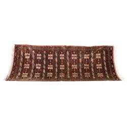 Youmod Turkoman Rug, Post 1950, Red ground with alternating horizontal rows of guls and 'C' s...