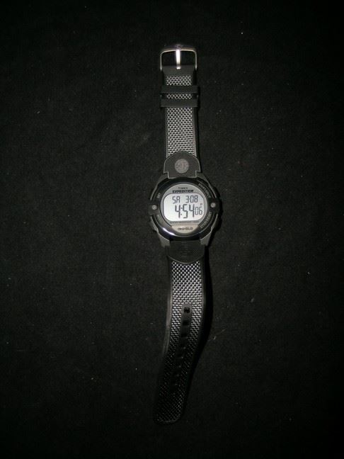 Screen worn, black and grey plastic 'Timex Expedition' wristwatch.