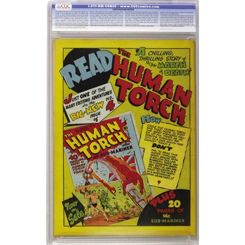 <B>Young Allies Comics #1 (Timely, 1941) CGC FN- 5.5 Cream to off-white pages.</B></I> No one created kid groups in heroic comics quite like the team of Joe Simon and Jack Kirby. Here's their very first such team - Timely's Young Allies. This is their first appearance and origin, and the Red Skull dropped by with his buddy Adolf Hitler to "wish them well!" Dig the crude-yet-cruel Nazi torture device rigged up to do away with the non-"super" members of the gang - think Toro will have a problem stopping it? Ha! This is a great mid-grade copy, loaded with eye-appeal. Overstreet 2006 FN 6.0 value = $4,083. CGC census 10/06: 1 in 5.5, 18 higher.<BR><BR><b>Shipping:</b> Slabbed Comic (<a target="_blank" href="http://www.heritageauctions.com/common/shipping.php">view shipping information</a>)