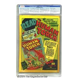 <B>Young Allies Comics #1 (Timely, 1941) CGC FN+ 6.5 Off-white pages.</B></I> The Young Allies burst onto the scene with this issue, which features the group's origin and first appearance. Making up the team were Captain America's sidekick Bucky Barnes, the Human Torch's pal Toro, and a colorful crew of like-minded youngsters (who often had to be rescued by the other two). And if even that isn't momentous enough for you, how about the fact that the story has the first-ever meeting of the Human Torch and Captain America? Overstreet has noted the increasing interest in this comic: the 2004 Guide moved it up in its rankings of the most valuable Golden Age books, elevating it to the top 50. The interior art is by Charles Nicholas, and the story is by Stan Lee ("The Man" was just a boy back then!). Jack Kirby, who co-created the group with Joe Simon, draws the issue's cover, which shows the Red Skull and Hitler getting what they so richly deserved: a punch in the face. CGC notes, "2 small pieces of tape on centerfold." Overstreet 2004 FN 6.0 value = $3,939; VF 8.0 value = $9,848. <BR><BR><B>Important notice:</B> Heritage usually auctions material at the rate of 200-250 lots per hour. On some occasions eBay Live bid software or the Internet may not be able to keep up with the pace of the auction. We recommend placing a realistic absentee bid now as insurance to avoid disappointment. Occasionally the auctioneer may eliminate or reject an eBay Live bid, and the auctioneer may also reopen a lot after the close of the eBay live bidding (usually because we missed an audience bid), and may reject your bid even if it shows you as the winning bidder. By bidding via eBay Live, you agree that Heritage may award the lot to another bidder at its sole discretion under the circumstances described above or any other reasonable circumstances. Since eBay bids are not shown to us until we open the lot on the floor, we treat those bids just like floor bids. In most cases the floor responds before the eBay bid is presented to us, due to Internet lag time, so for consistency we have made it a policy that floor bids are always considered first over tie eBay live bids. Also please note that all Heritage lots purchased through eBay Live carry a 20% Buyer's Premium. Please make sure you read the Terms and Conditions before you bid.