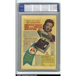 Young Allies Comics #17 (Timely, 1945) CGC VF+ 8.5 White pages. After WWII ended, so did the famous war covers of Timely, as the Axis were replaced by a new breed of villain. Here we see our young heroes thwarting an attempted heist of...cigarettes? Is it possible Philip-Morris bankrolled this team? A very pretty copy with a light impact to the top cover, and white pages. Overstreet 2002 VF 8.0 value = $597. Important notice: We expect to be auctioning lots at the rate of 200-250 per hour. Sometimes eBay Premier live bid software cannot keep up with that pace, so we strongly recommend that you place a realistic proxy bid now as insurance to avoid disappointment. Also please note that all Heritage/CAA lots purchased through eBay Premier carry a 20% Buyer's Premium.
