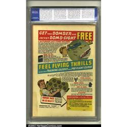 Young Allies Comics #9 (Timely, 1943) CGC FN+ 6.5 Cream to off-white pages. Hitler, Tojo and Mussolini appear on this highly sought-after issue. This incredibly classic book it at the top of many collectors want lists. Rarely offered for sale in any grade, and snapped up into permanent collections when ever they do turn up, a nice condition copy of this book is a real find. This copy has a solid spine, clean cover, and no creasing. Overall, a perfect book to add to your Timely collection. Overstreet 2002 FN 6.0 value = $408. Important notice: We expect to be auctioning lots at the rate of 200-250 per hour. Sometimes eBay Premier live bid software cannot keep up with that pace, so we strongly recommend that you place a realistic proxy bid now as insurance to avoid disappointment. Also please note that all Heritage/CAA lots purchased through eBay Premier carry a 20% Buyer's Premium.