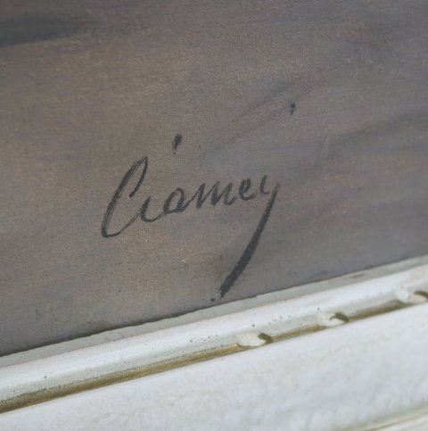 Oil on canvas. Framed. Signed "Ciarney" lower right. Approx. 27" H x 19" W unframed, 36" H x 28" W framed.