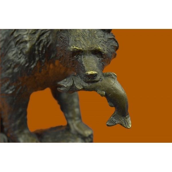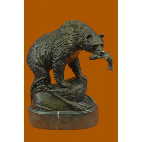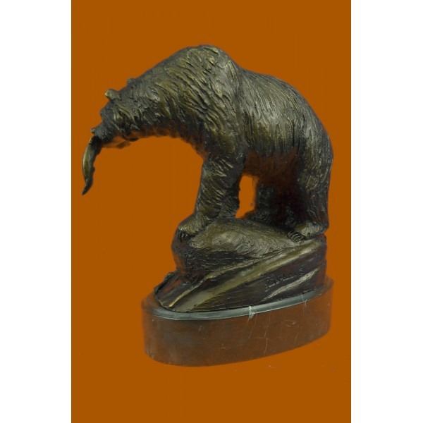 It features a young bear standing on top of a cliff leaning its weight into a rock proudly displaying his catch for the day. To this day, bears play a prominent role in the arts, mythology, and other cultural aspects of various human societies. The bear was thought to possess diplomacy equal to its great strength and it is the emblem of ferocity in the protection of kindred. A bear is also a symbol of healing and personal health, strength and bravery. Bears’ paws are also often found as crests or symbols on shields. Bronze dimensions with marble base: Height 9 X Width 8 inches. Weight: 7 lbs.Please Note: This is a reproduction bronze sculpture from the original molded and signed. This featured bronze sculpture is a recast after the original, and has been done recently. This 100% bronze sculpture is an abstract piece certain to be a conversation piece.Please Note: This is a reproduction bronze sculpture from the original molded and signed. This featured bronze sculpture is a recast after the original, and has been done recently. This 100% bronze sculpture is an abstract piece certain to be a conversation piece.