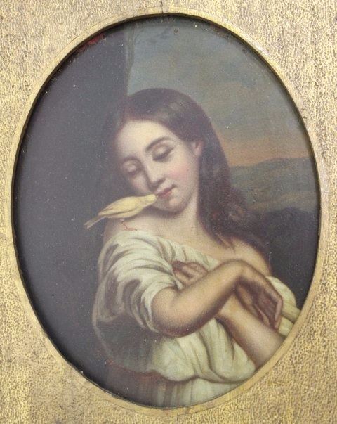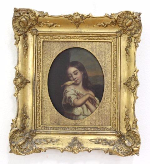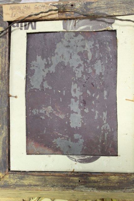 Oil on tin. Late 19th or early 20th century. Continental. Approx. 12" H x 11" W frame. 7 3/4" x 6 1/4"W unframed.