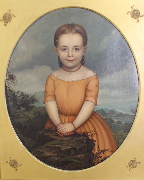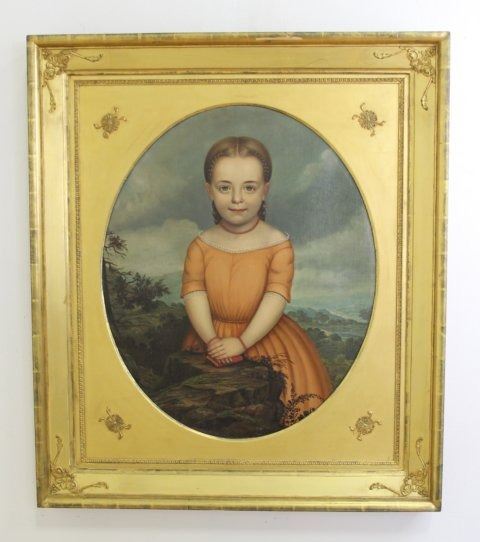 Oil on canvas. Gilt frame. Early 19th century. Approx. 29" H x 24" W image, 40" H x 35 1/2" W framed. Some craquelure. Minor gilt loss on frame.