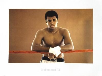 Here's an early image of the Greatest, leaning on the ropes for a portrait.Title: Muhammad Ali: Ropes.Source: AnonymousMedium: Print on paperPaper: 31 1/2 x 23 1/2Condition: Excellent