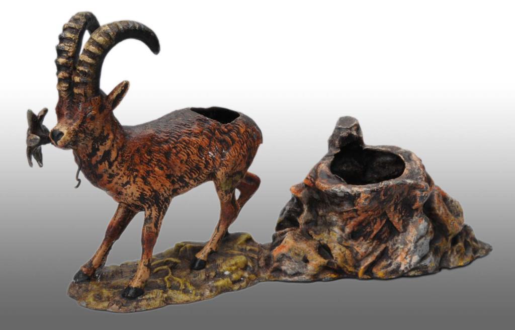 Description Lead metal. Ram with flower in its mouth and open tree stump. No damage. Condition (Excellent). Size 9" x 6".