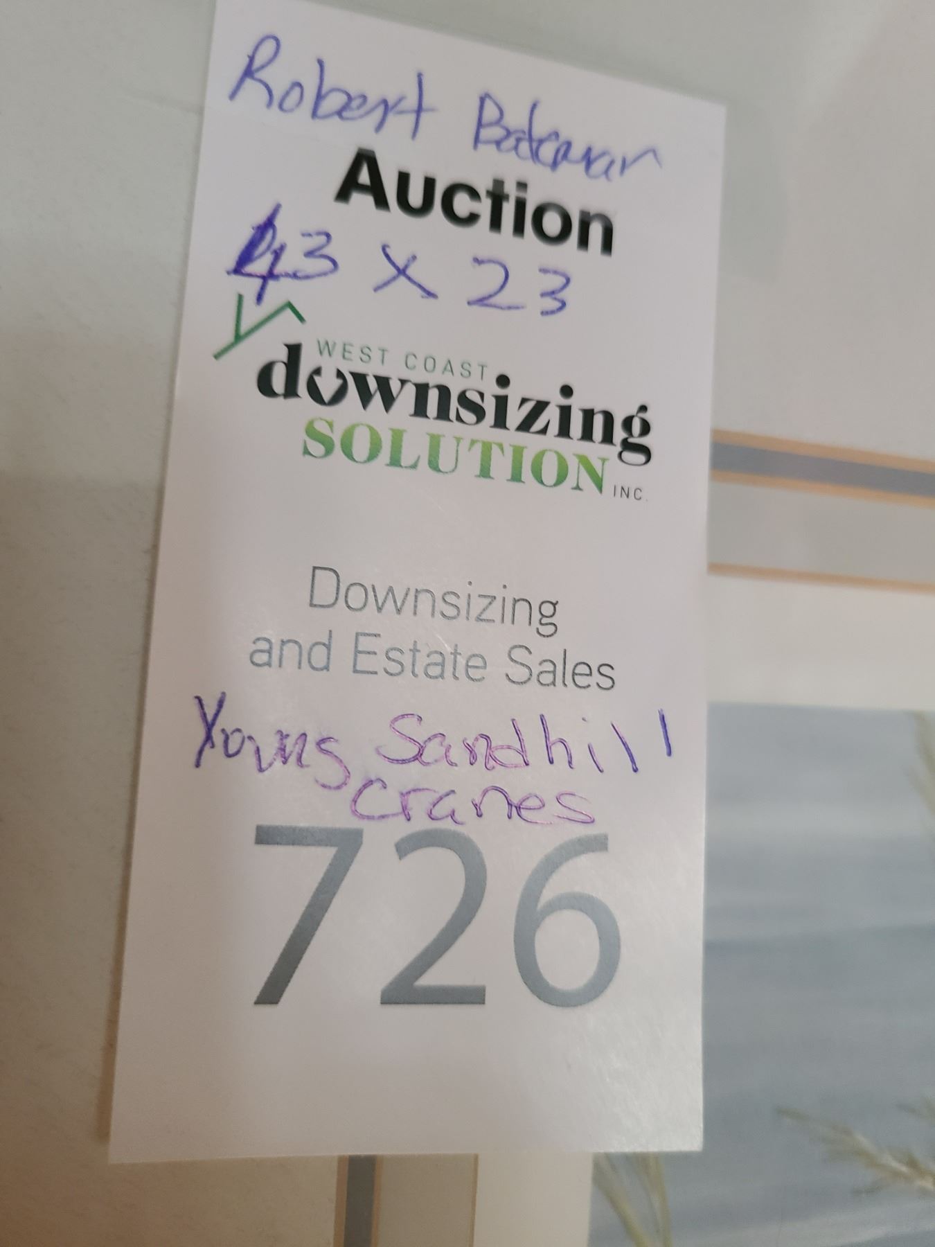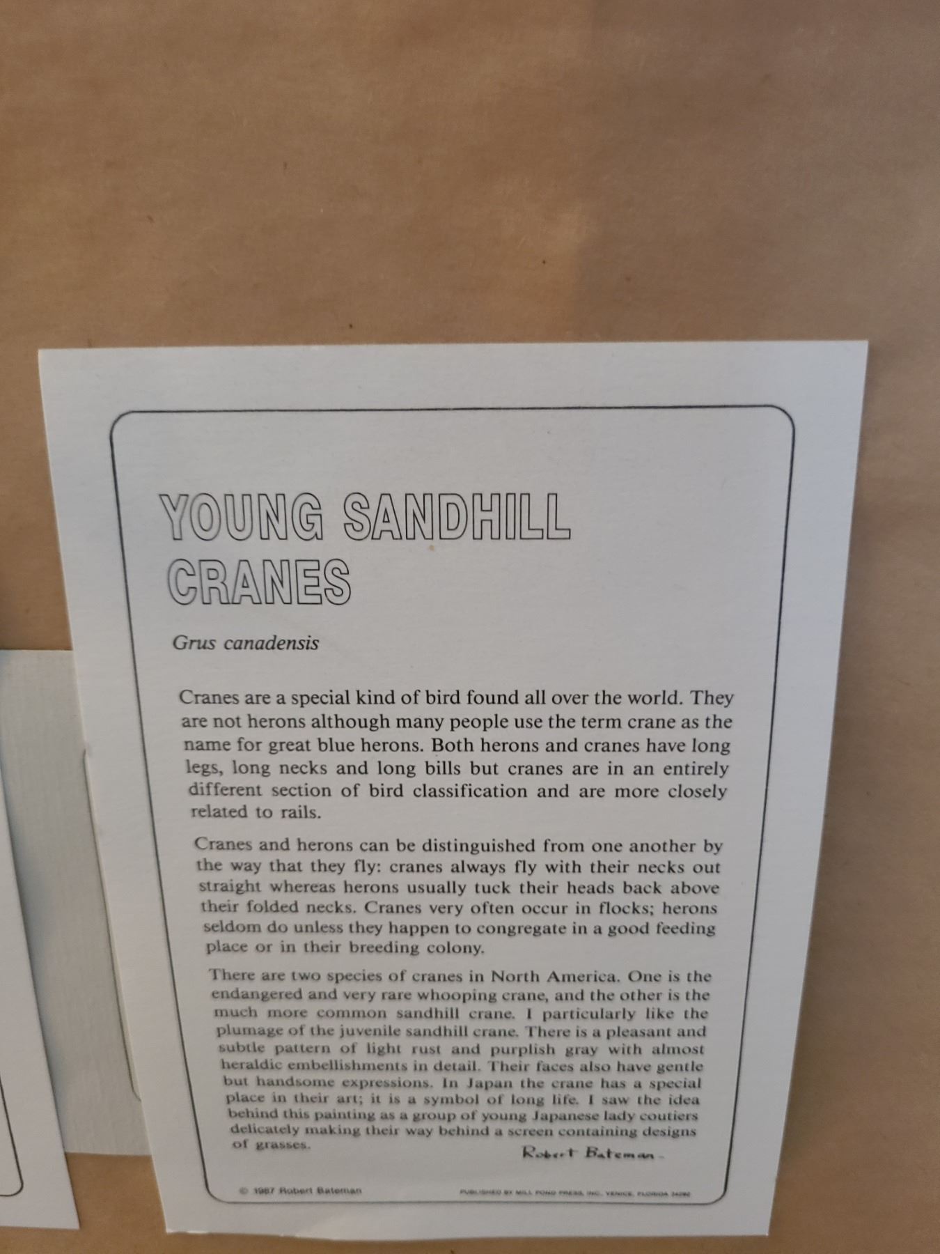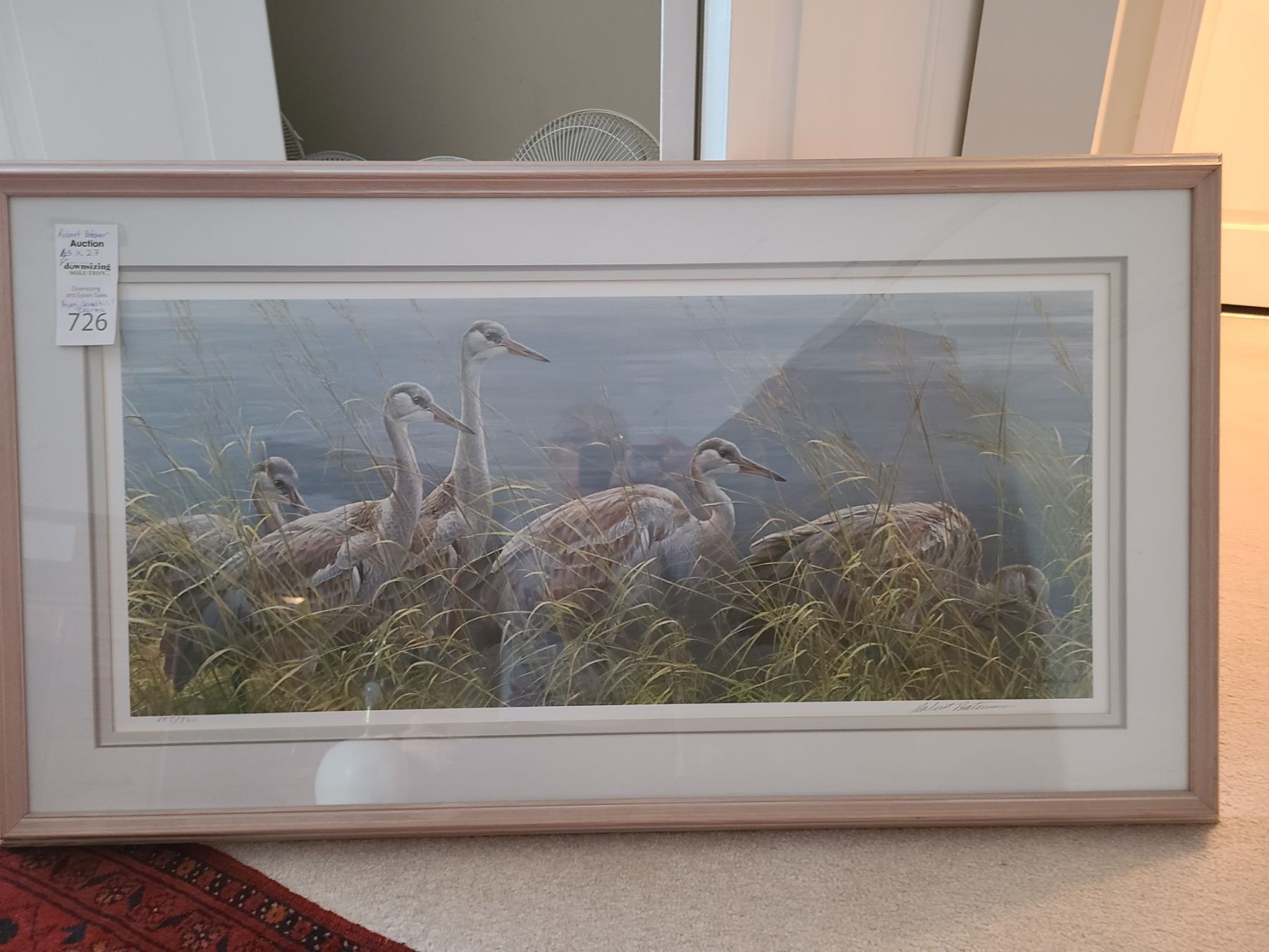 Young Sandhill Cranes by Robert Bateman 43x23 with Certificate. Pickup at 9 am.