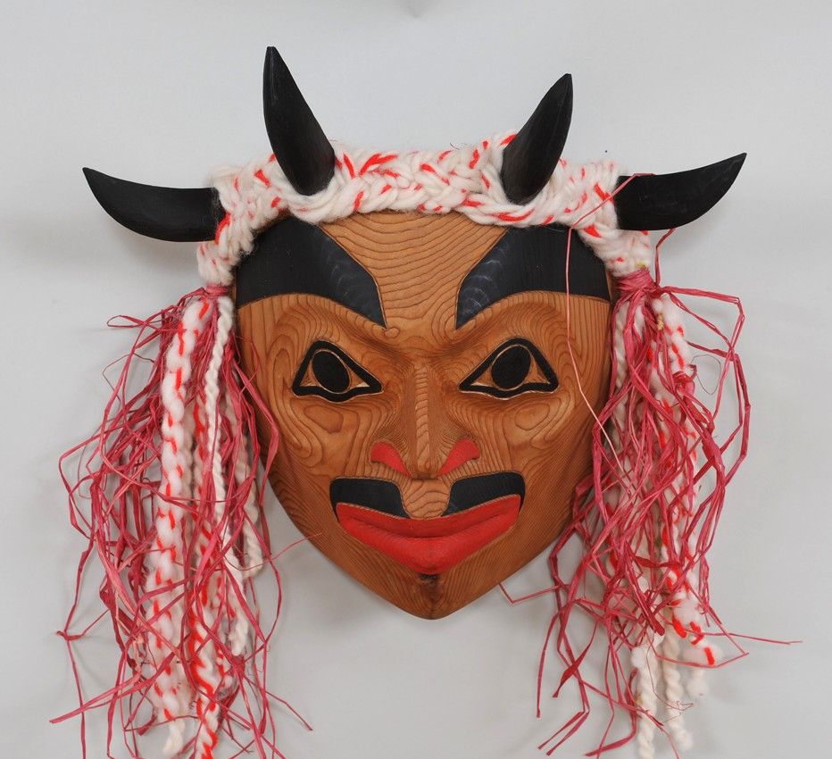 Young Shaman Mask Carved by Tom LaFortune 12 1/2" H. 9 1/2" W. Good Condition