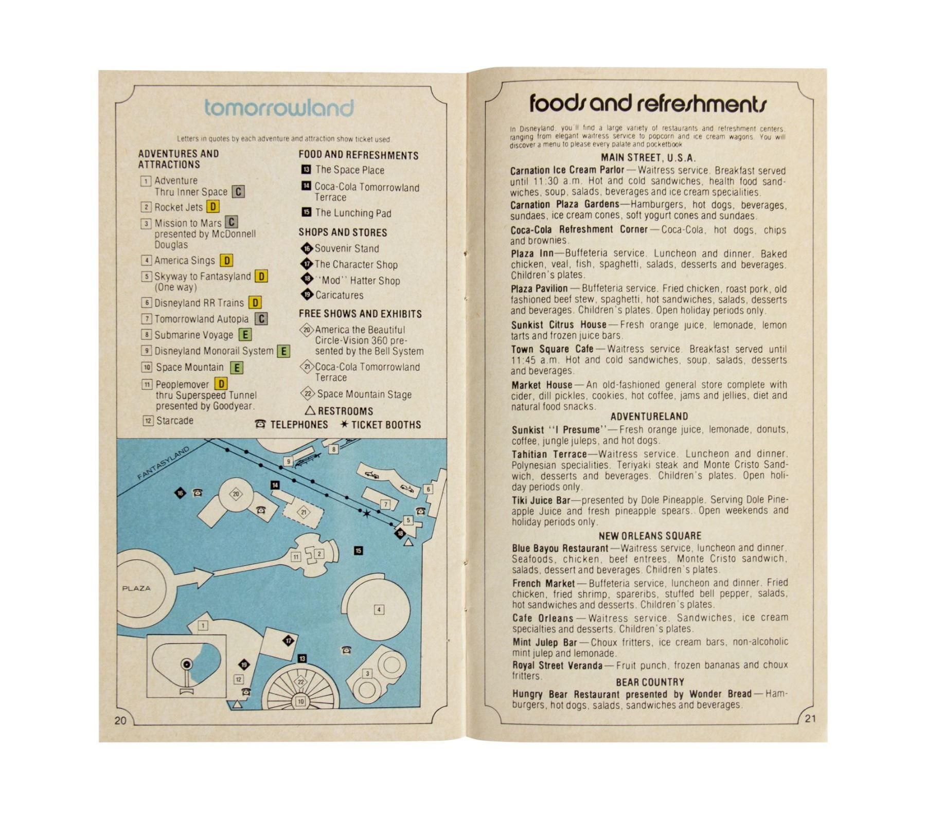 (Disneyland, 1978) A rare Disneyland guidebook for the Spring of 1978. This guidebook contains information on attractions, illustrated park maps, and information on stores and restaurants throughout the park. The back page advertises for the Walt Disney Productions film "Candleshoe". This 25-page guidebook measures approximately 7"x3.75" and is in good condition with minor edge-wear.