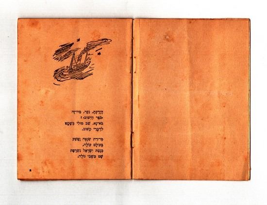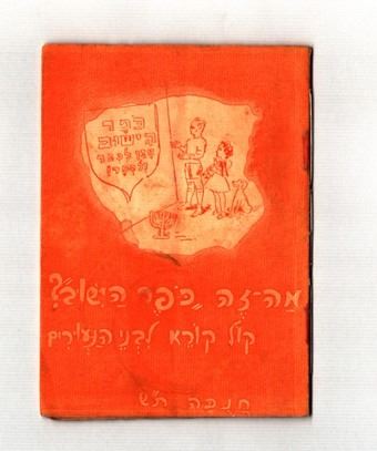 Youth book - What is Kfar HaYeshuv? [Hebrew] rhymes by Immanuel Harusi, paintings: Nahum Gutman, Hapoel Hamizrachi Print, Hanukkah 1939. Good condition: binding reasonably worn, yellowing pages, some foxing on some of the pages.