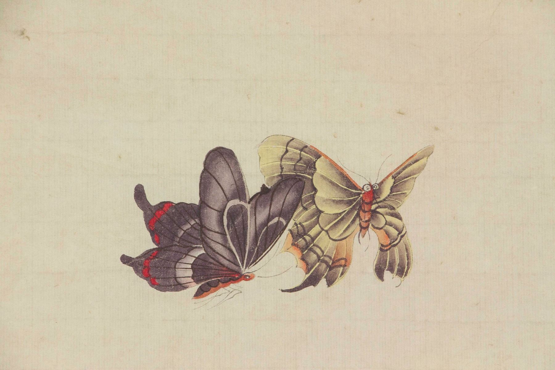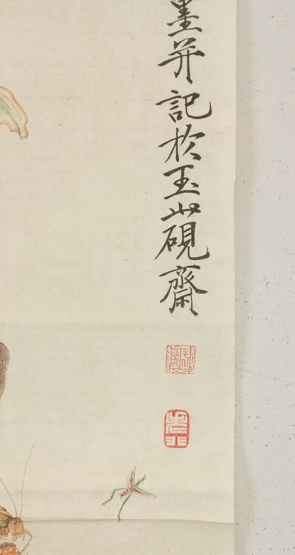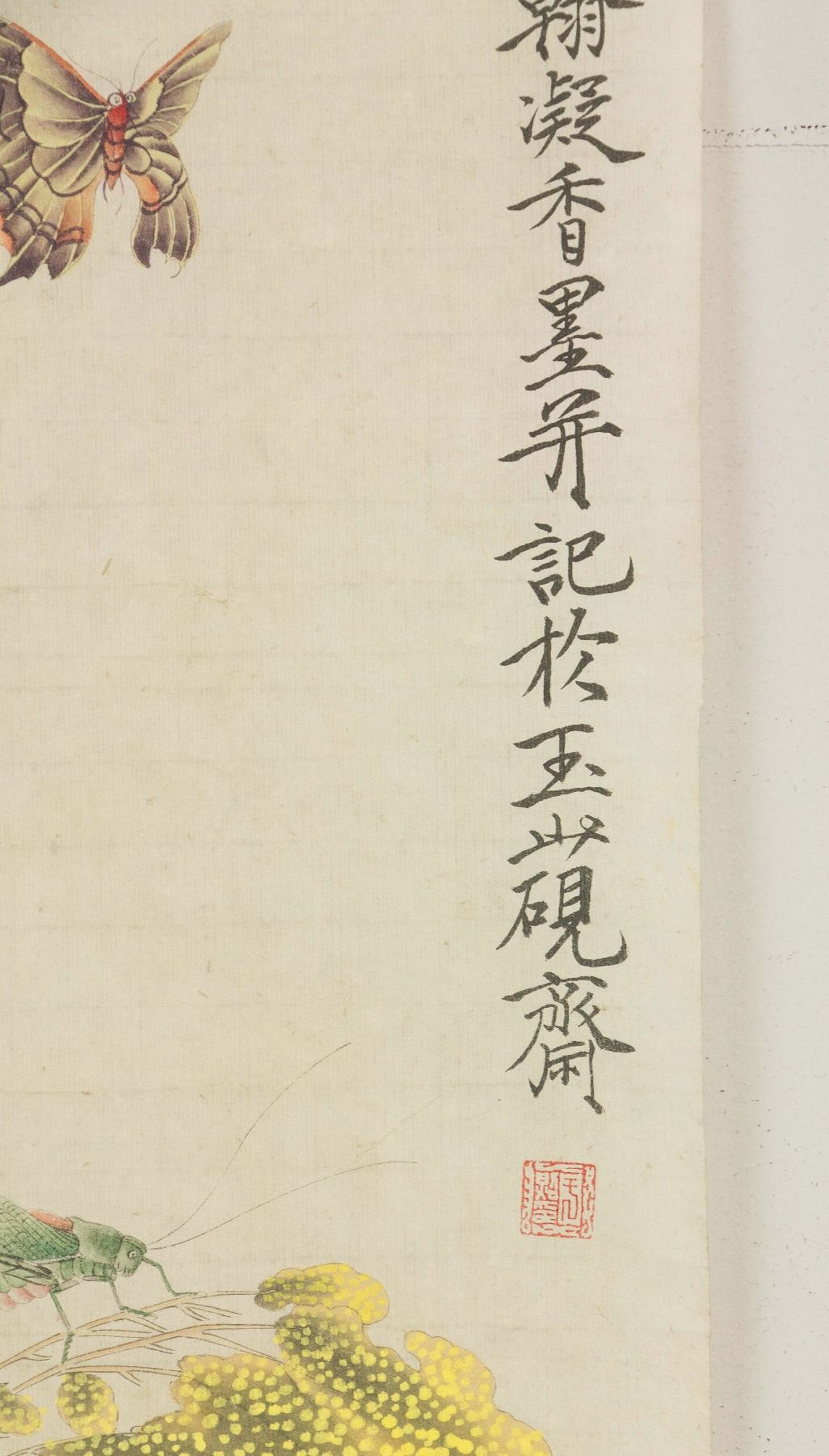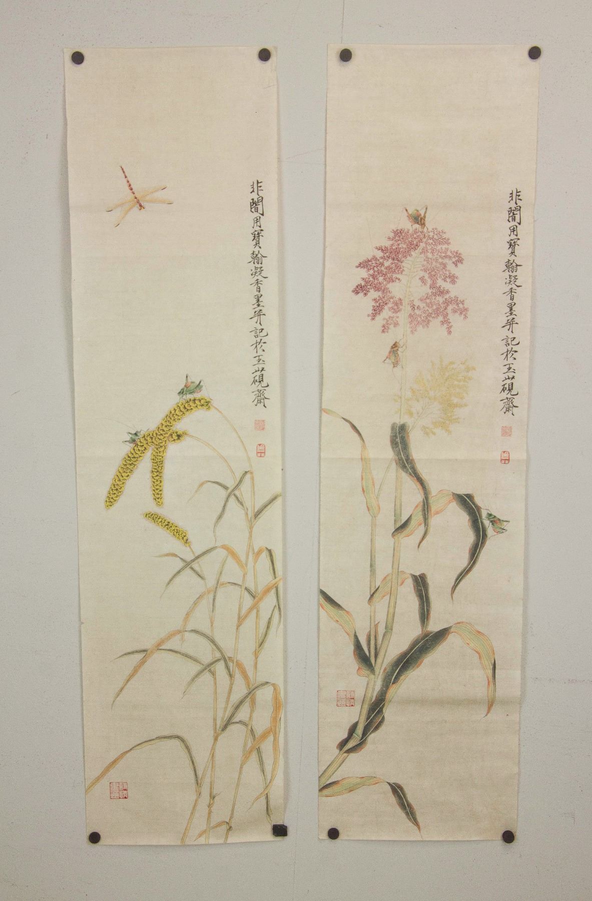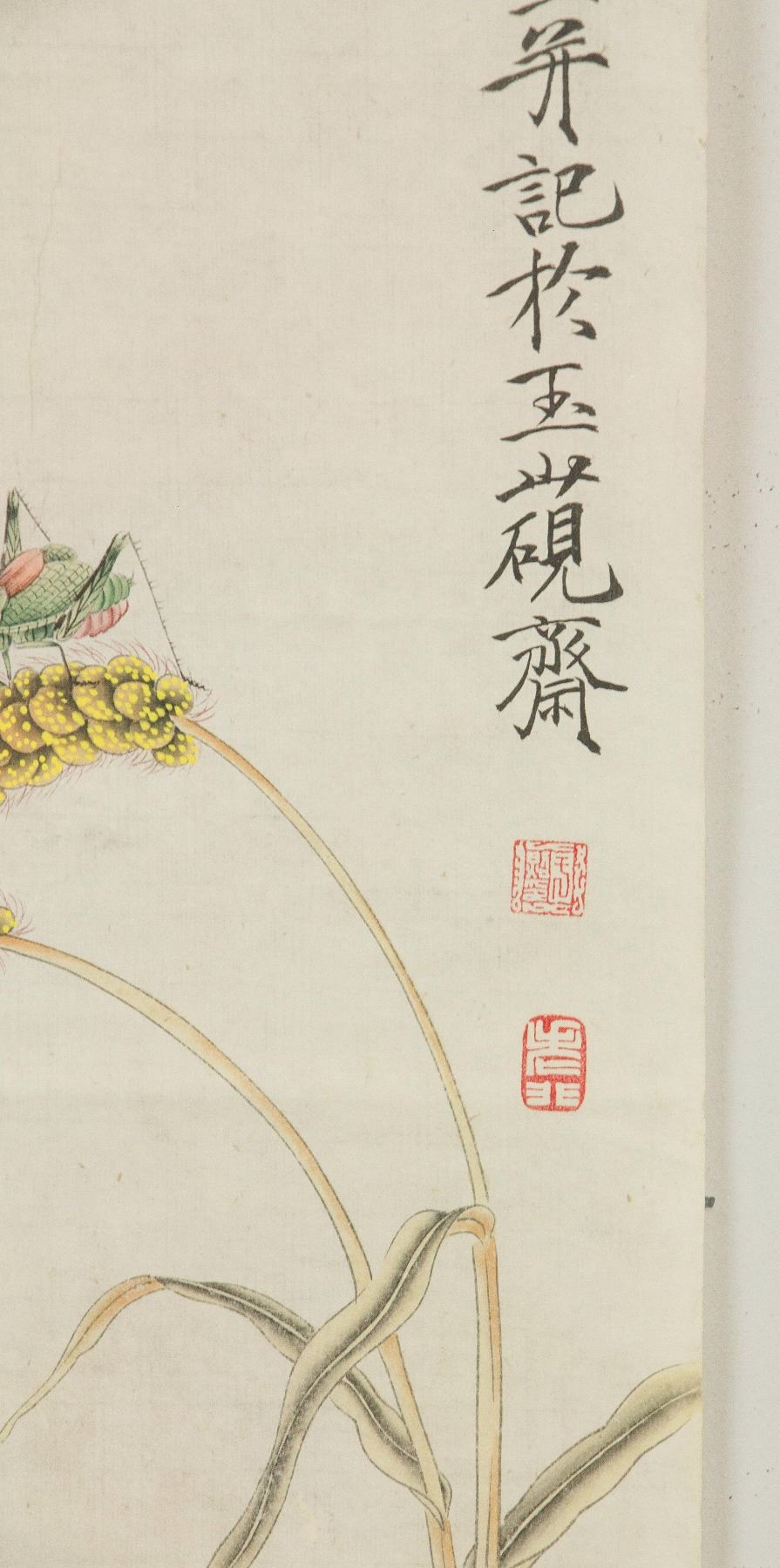 Four pieces painting of varies plants and insects including: wheat, corn, butterfly, grasshopper, dragonfly and praying mantis; Chinese ink and watercolour on paper; signed Yu Feian (1889-1959); each one inscribed with 3 artist seal; 31 cm x 33 cm (each)