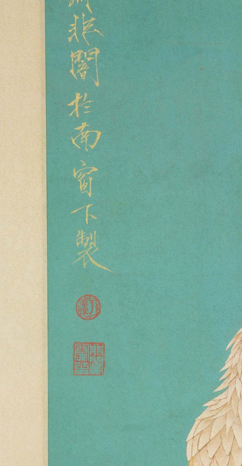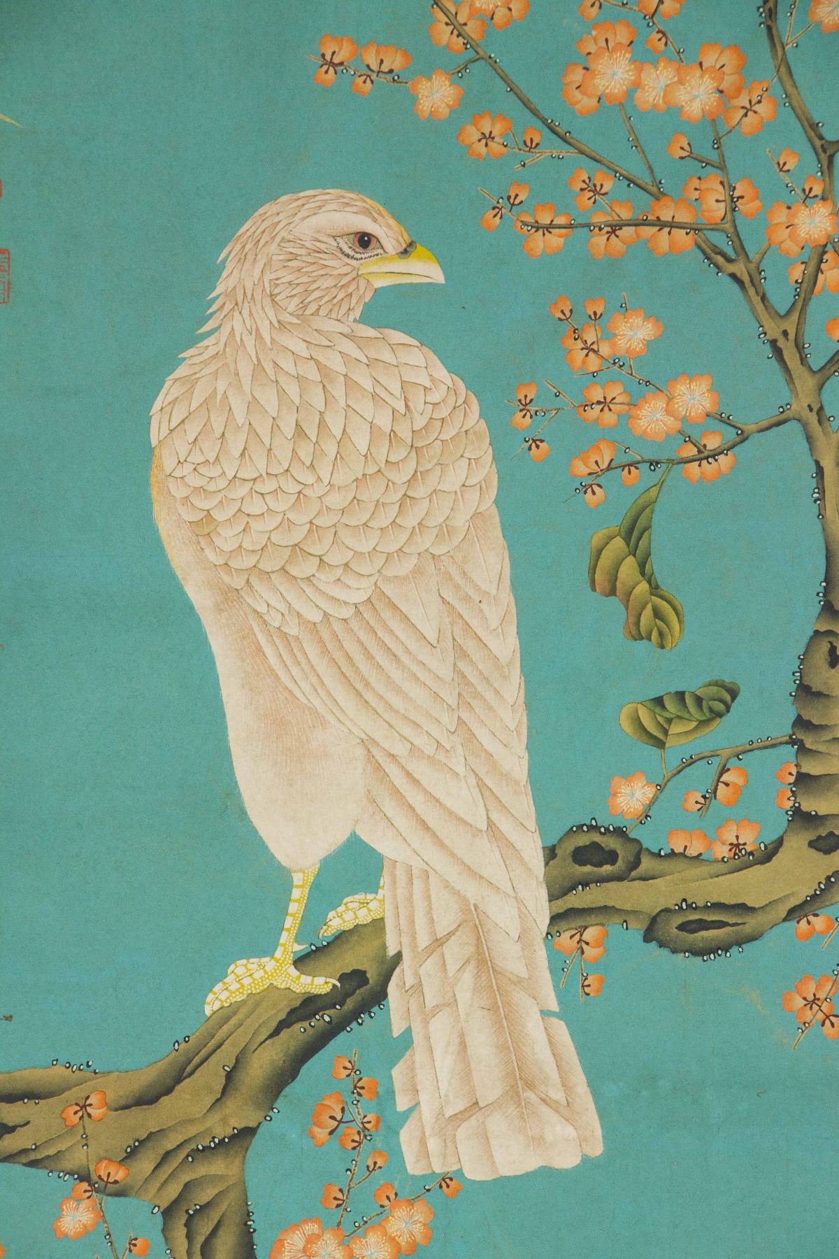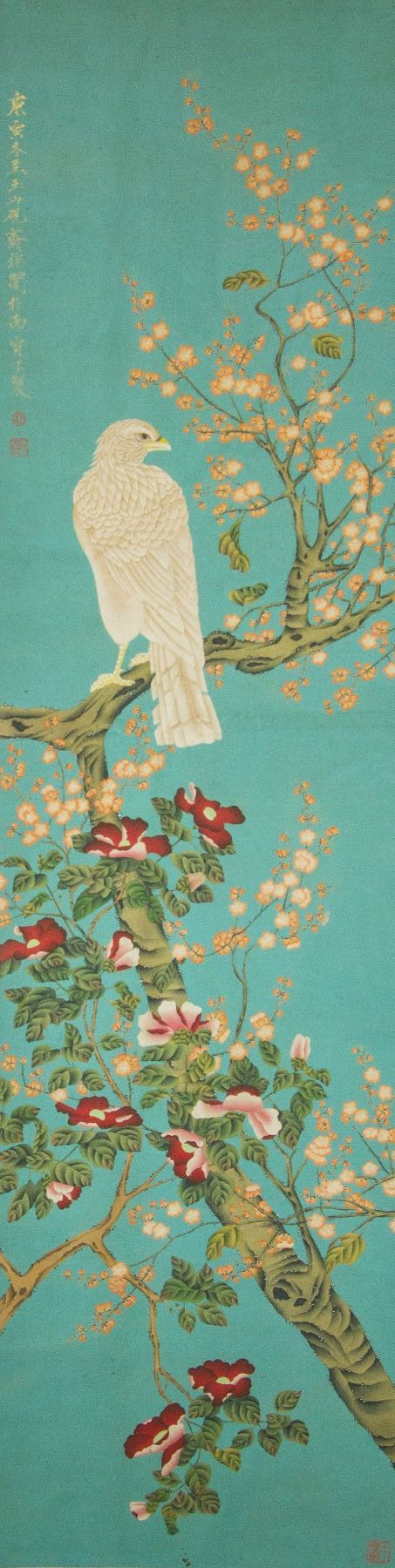 Eagle standing on plum tree; Chinese ink and watercolour on paper; hanging scroll; signed Yu Feian (1889-1959); inscribed with 2 artist seals; 173 cm x 45 cm