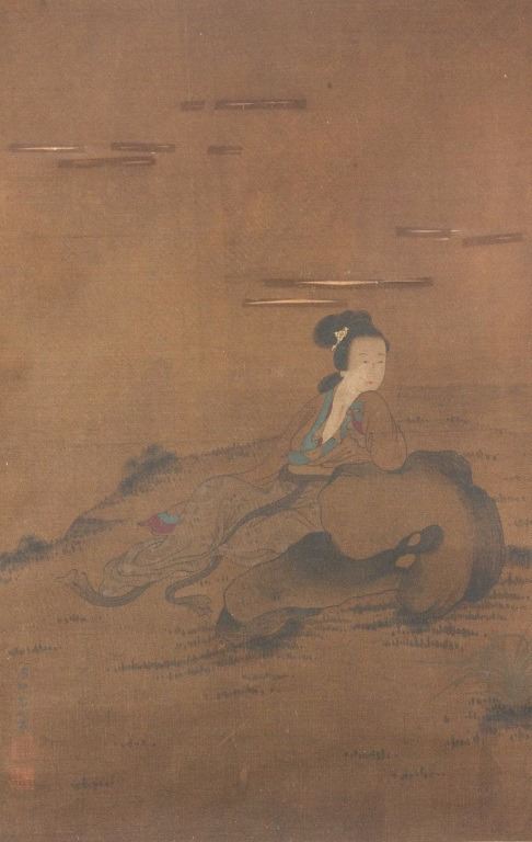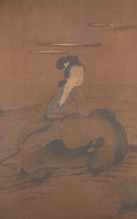 Portrait of a beauty; Chinese ink and watercolour on silk; hanging scroll; signed Yu Zhiding (1647-1709