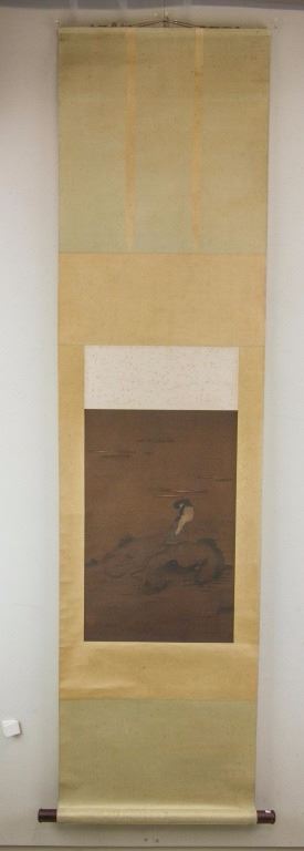 ); inscribed with 2 artist seals; damaged; 76 cm x 39 cm