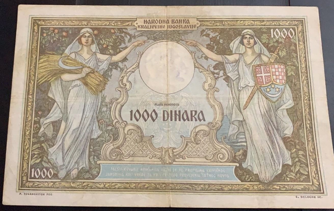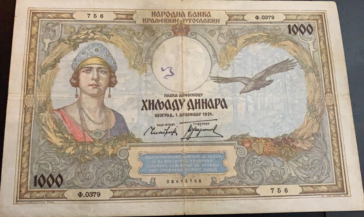 Yugoslavia, 1.000 Dinara, 1931, XF, p29br/serial number: 0379/756