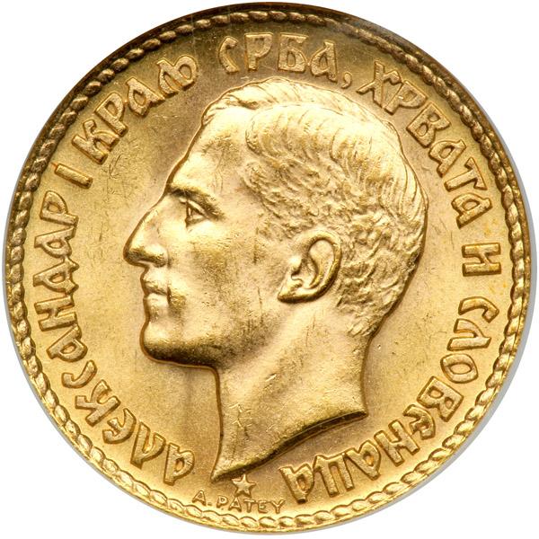 Yugoslavia. 20 Dinars, 1925. Fr-3; KM-7. Alexander I. Head left. One year type. NGC graded MS-65.