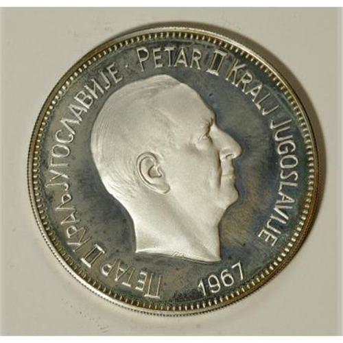 <B>Peter II Govt In Exile 1967 Crown,</B></I> KM-XE1 and XE2, silver and Franklinium, both choice Proof.<BR><BR><b>Shipping:</b> Coins & Currency (<a target="_blank" href="http://www.heritageauctions.com/common/shipping.php">view shipping information</a>)