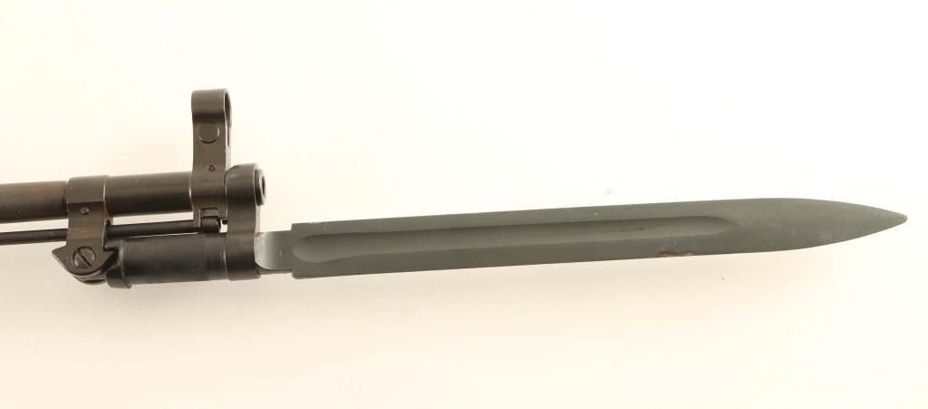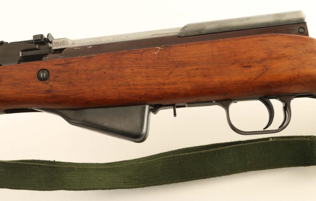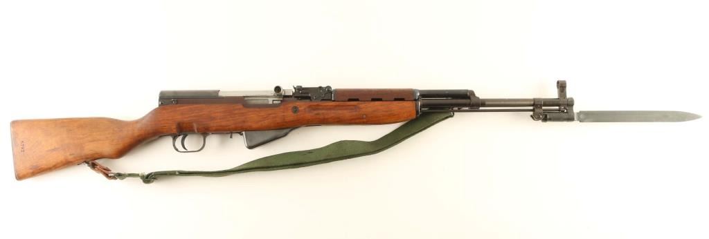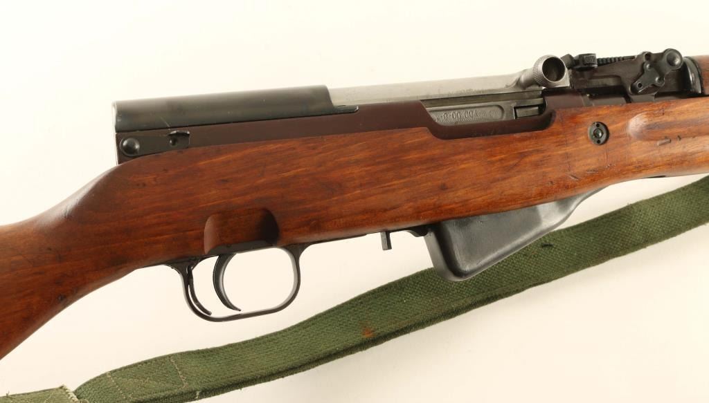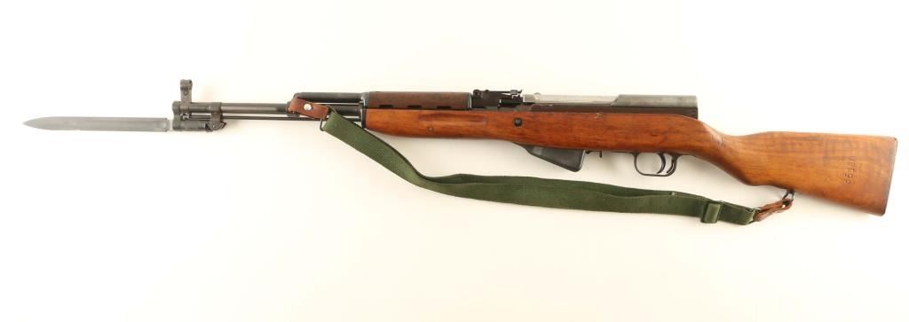 Yugoslavian made semiautomatic rifle, imported by Samco, Miami FL. Features approx 20" barrel, adjustable sights, folding blade bayonet, fixed 10 round magazine, cleaning rod under barrel, cleaning kit in butt trap. Bore is excellent condition. Metal parts retain 95% dark bluing, with bare metal showing at some sharp edges. Bolt and carrier are in the white. Stock is excellent. Matching number on bolt carrier and stock; other observed numbers appear to be part numbers or similar. Stock marked "1.TRZ". Includes very good condition dark green canvas web sling. Condition is NRA Excellent *** C&R Firearm ***
