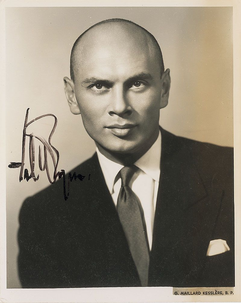 Dashing matte-finish 8 x 10 publicity photo of Brynner in a formal suit, signed in black felt tip with his uncommon full signature. Reverse bears a G. Maillard Kesslere photographer’s stamp. In fine condition, with slight irregular adhesion to ink.