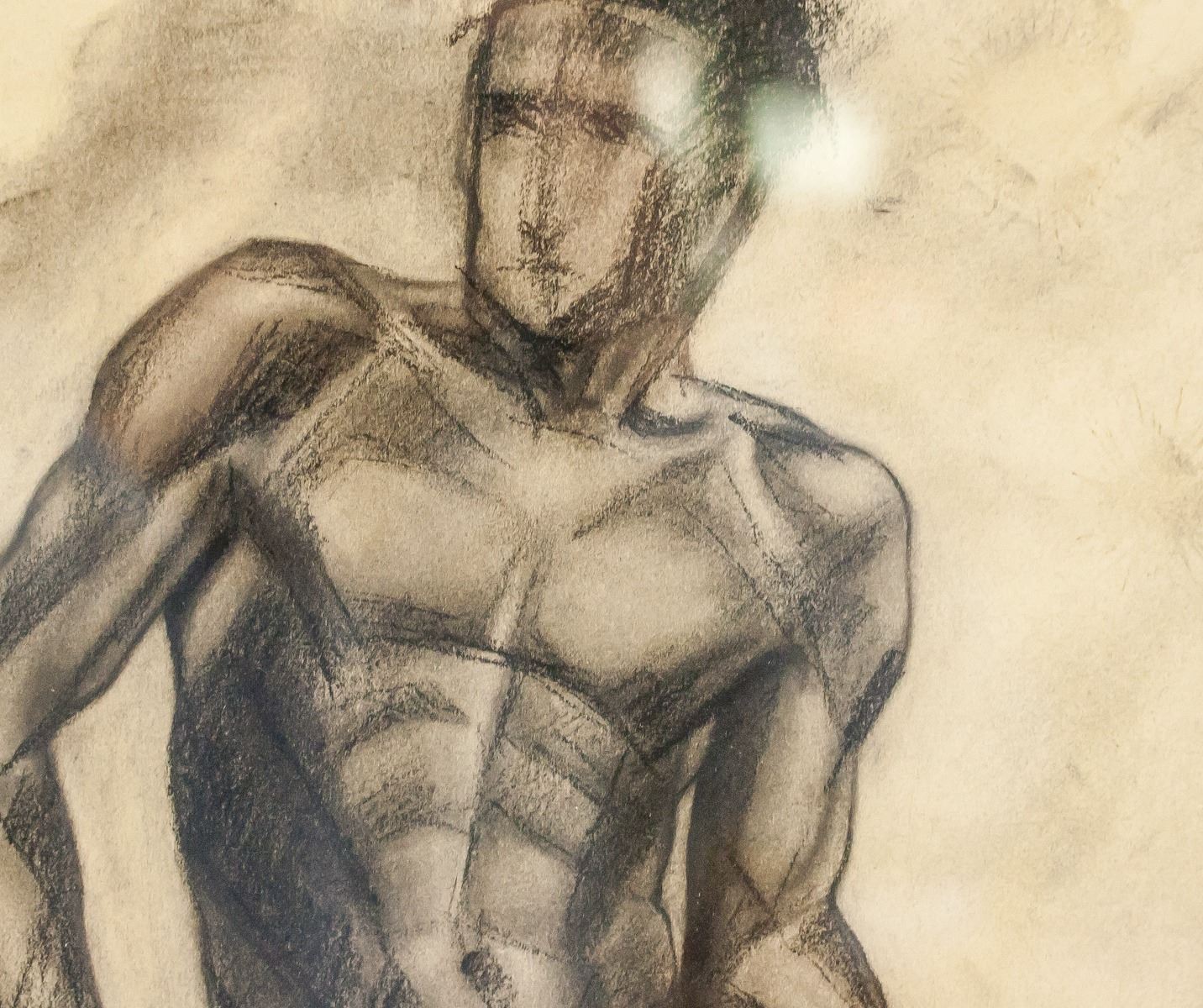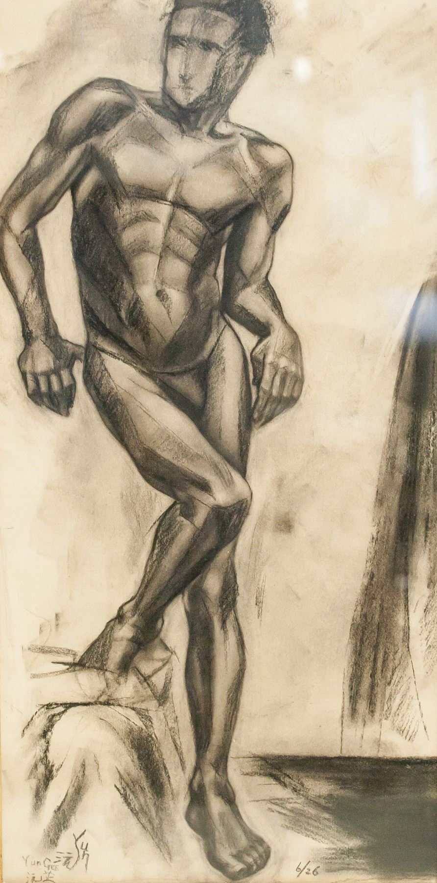 Pastel on paper, framed. Featuring study of nude. Signed Yun Gee on the lower left corner. Inscribed 6/26. Attributed to Yun Gee (1906-1963, Chinese-American). 61 x 30 cm (24 x 12 in), Frame: 82 x 52 cm (32.3 x 20.5 in). PROVENANCE: Toronto estate