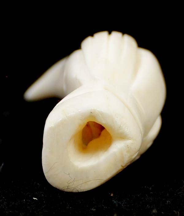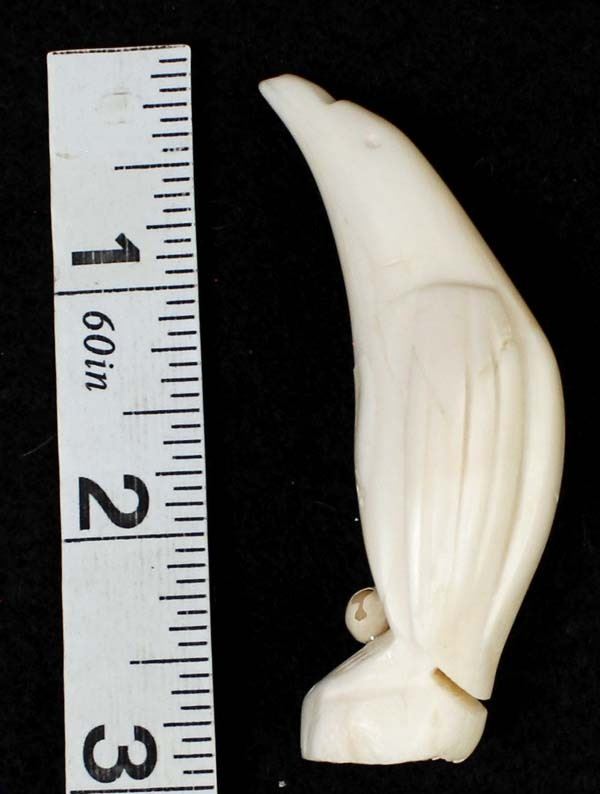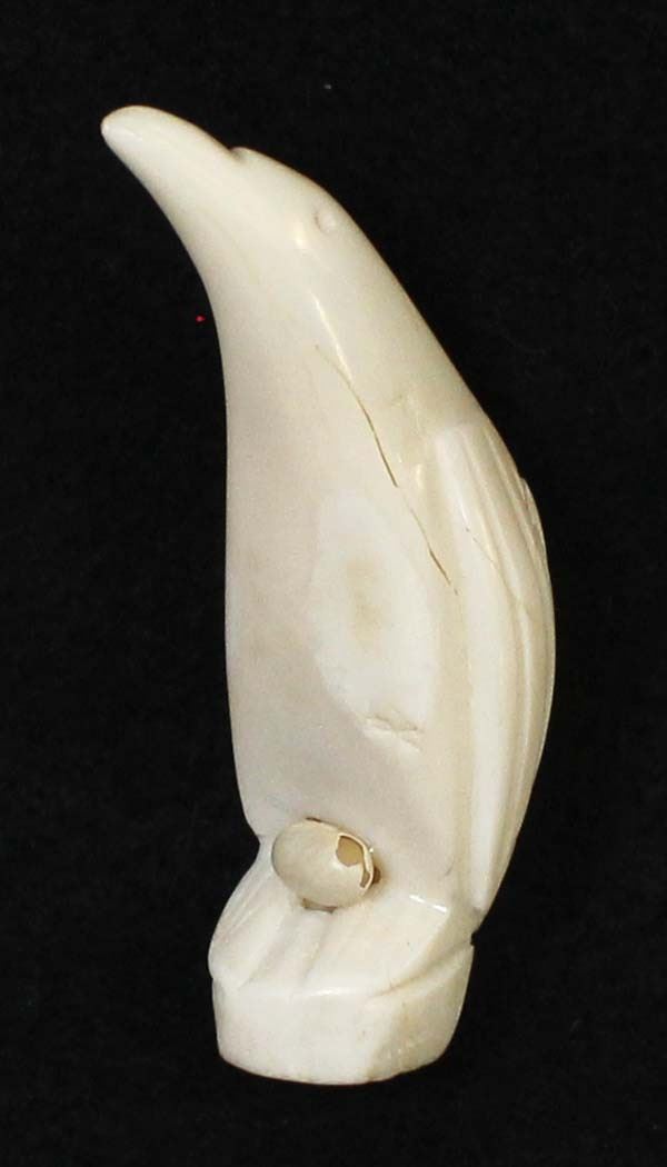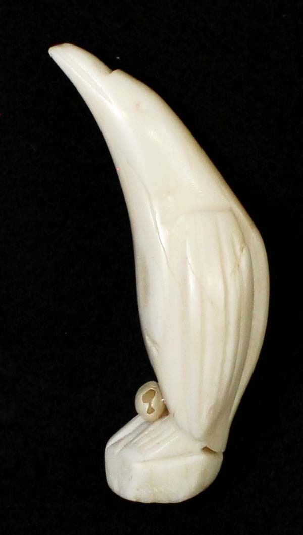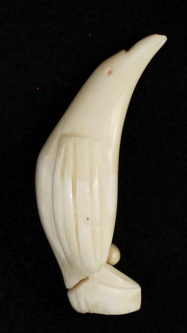 Yup'ik Carved Ivory Male Penguin with Egg, measures .75'' x 2.75'' x .5''
