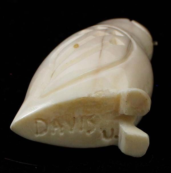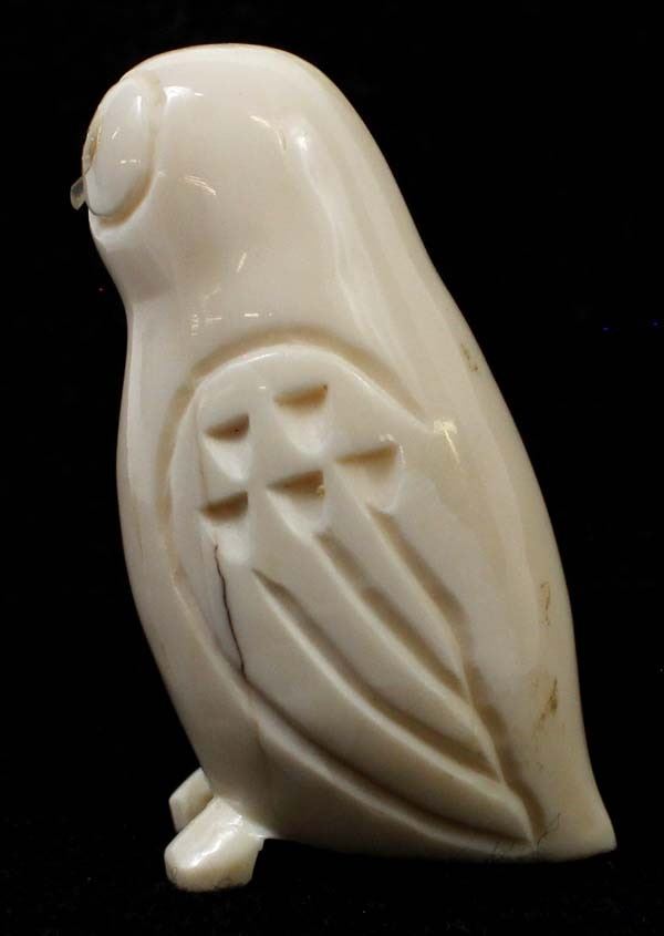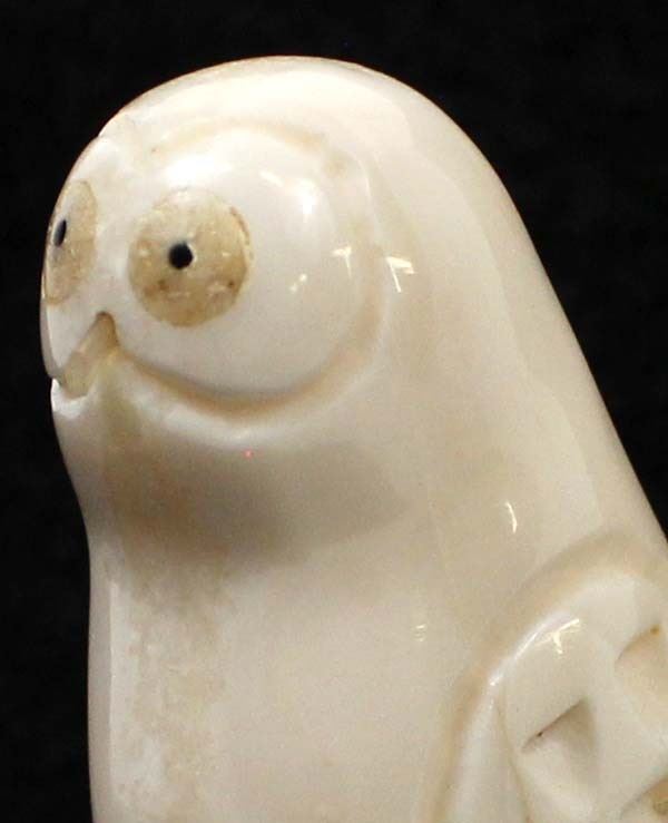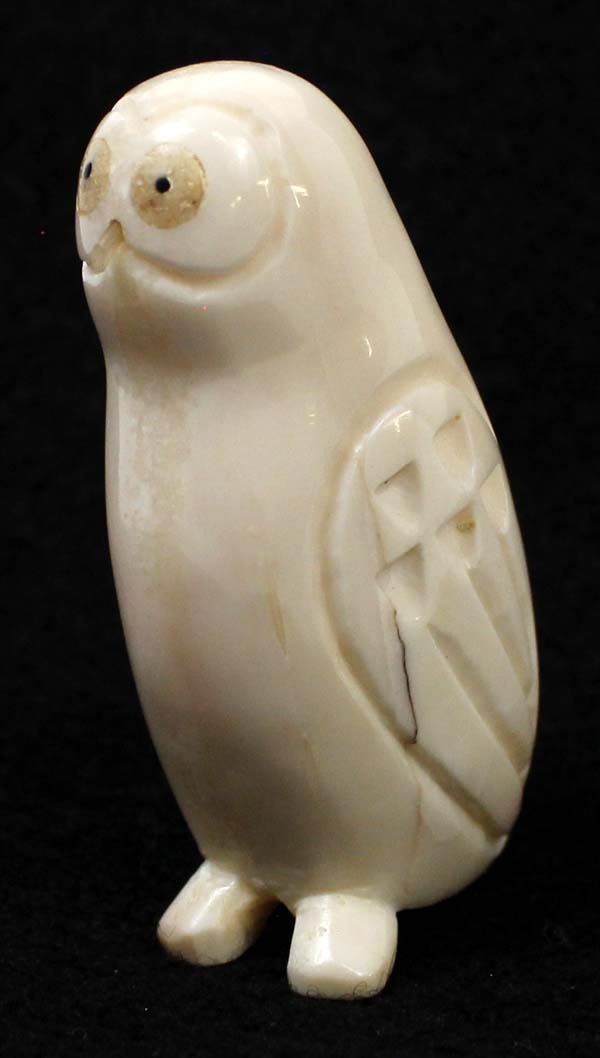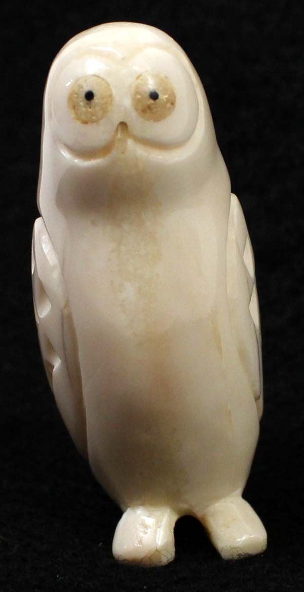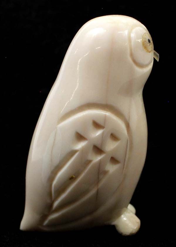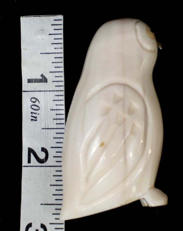 Yup'ik Walrus Tusk Ivory Owl by Davis Uglwook, measures 1'' x 2.5'' x 1'', Uglwook resides in St.Lawrence Island, Alaska