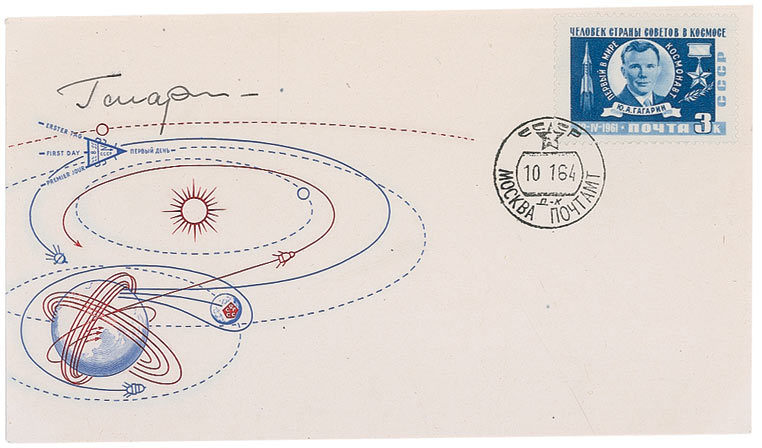 Kniga cover, 6.5 x 3.75, postmarked at Moscow on January 10, 1964, signed in the upper left in black ink. In fine condition.