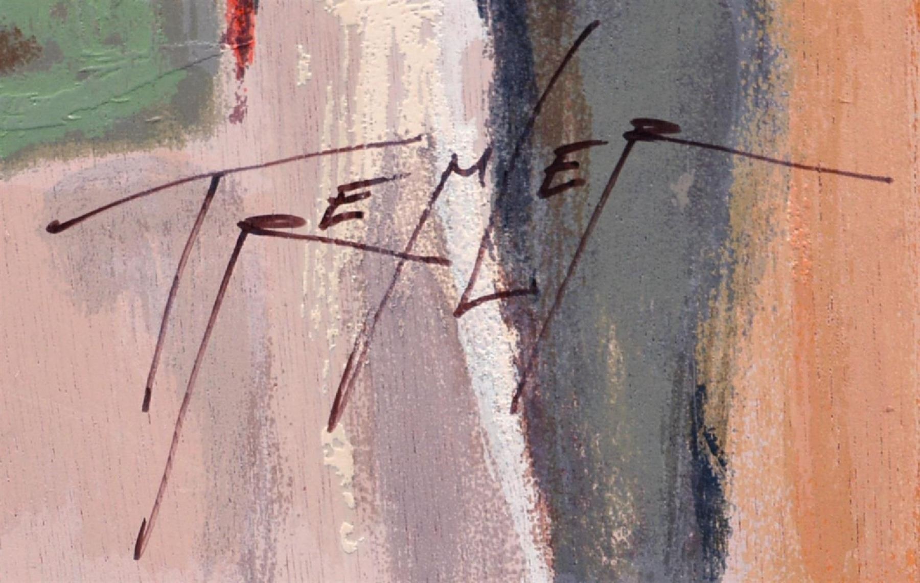 Artist: Yuri Tremler - Title: Amphora - Medium: Serigraph on Fine Art Wood - Signature: Hand-signed by the Artist - Limited Edition: HC 60 - Image Size: Approximately 12.5 inches x 22.5 inches - Framed: Unframed - Details: This work comes with a Certificate of Authenticity - Yuri's art reminds us of sudden still-life, left after an intimate party, of time spent with friends, or shared past which still excites. Sometimes whimsical, sometimes nostalgic, Tremler's art reaches inward to basic emotions of humanity.