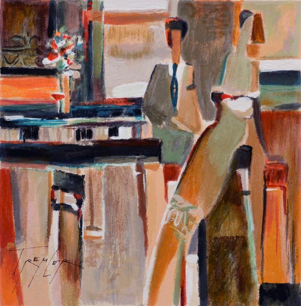 Artist: Yuri Tremler - Title: Cocktail III - Medium: Serigraph on Fine Art Paper - Signature: Hand-signed by the Artist - Limited Edition: 490 - Image Size: Approximately 12.5 inches x 12.5 inches - Paper Size: Approximately 13.5 inches x 13.5 inches - Framed: Unframed - Details: This work comes with a Certificate of Authenticity - Yuri's art reminds us of sudden still-life, left after an intimate party, of time spent with friends, or shared past which still excites. Sometimes whimsical, sometimes nostalgic, Tremler's art reaches inward to basic emotions of humanity.