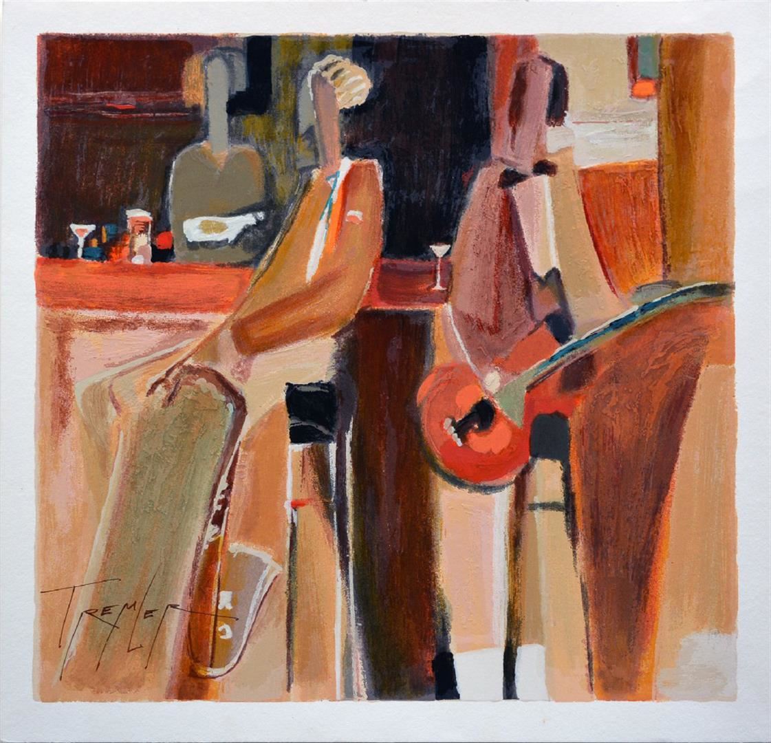 Artist: Yuri Tremler - Title: Cocktail II - Medium: Serigraph on Fine Art Paper - Signature: Hand-signed by the Artist - Limited Edition: 490 - Image Size: Approximately 12.5 inches x 12.5 inches - Paper Size: Approximately 13.5 inches x 13.5 inches - Framed: Unframed - Details: This work comes with a Certificate of Authenticity - Yuri's art reminds us of sudden still-life, left after an intimate party, of time spent with friends, or shared past which still excites. Sometimes whimsical, sometimes nostalgic, Tremler's art reaches inward to basic emotions of humanity.