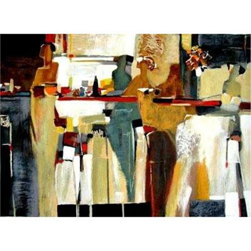 Yuri Tremler <p>Original Serigraph on canvas<p>Hand Signed and Numbered by the Artist Yuri Tremler <p>Title: " The Conversation "<p>Size: 38" x 23.5"<p>Edition Size: 380<p>Condition: Mint<p>Yuri Tremler was born in the Ukraine in 1961. He Attended the College of Arts in Kharkov. Later he continued his studies at the Kharkov Art & Design Academy and the Gall Design School in Germany, and worked as a theater decorator as as interior designer.<p>In 1996 Tremler immigrated to Israel, where he tried his hand in crafts and jewelry, further refining his sensibilities regarding texture, shape and function. In Israel many new materials became available to the artist - multimedia of acrylics, pastes and varnishes opened a whole range of new possibilities to Tremler. After two years he became a full time painter; exhibiting his works regularly in Israel and the United States.<p>Between 1988 and 2003 Tremler created a large body of paintings, which have combined both figurative and abstract approach His closely related compositions show female silhouettes and goblets, flowers and vases, often playing with the use of light, all within the context of interior settings. Yuri's concentration on color and texture is paramount. The artist reflects: "Besides the search for a new language in the decorative painting, I am Intrigued by the contrast between shiny and matte surfaces, planes and volumes".<p>His paintings please the eye with a richness of color, a great sense of color balance and confident ...